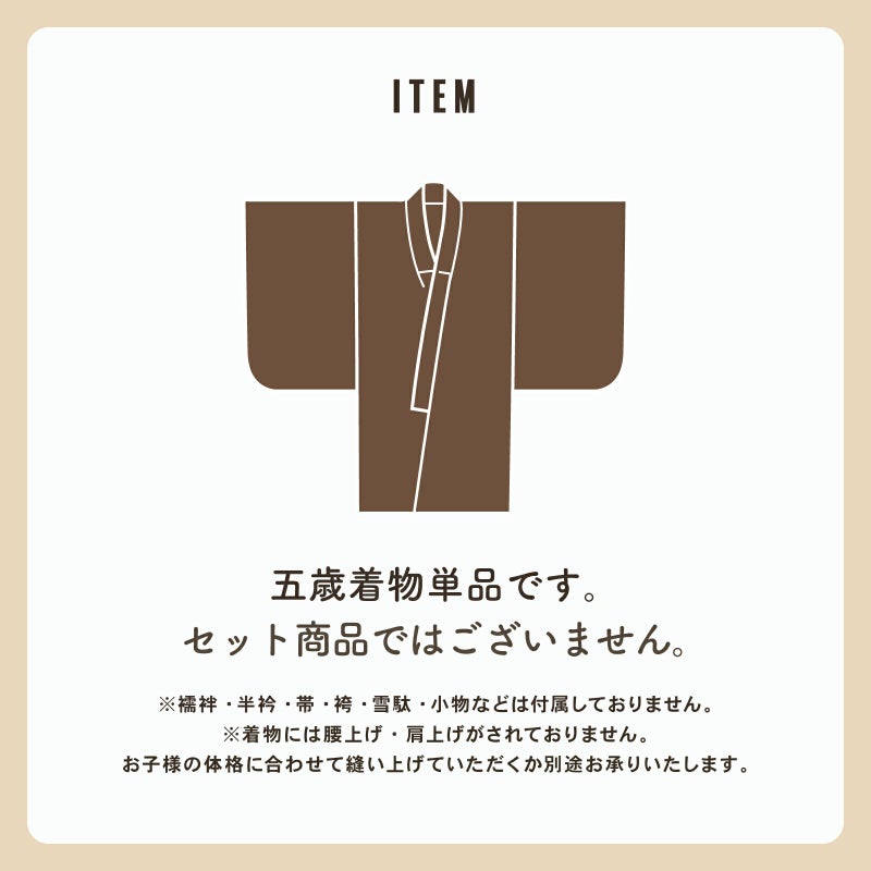 4. 七五三 男の子 5歳 着物 単品「縞更紗 利休」5歳向け 5才 五歳 男児用 着物 子供着物 五才のお祝い着【メール便不可】