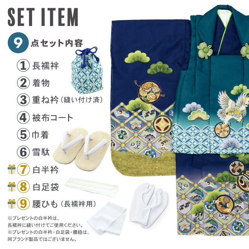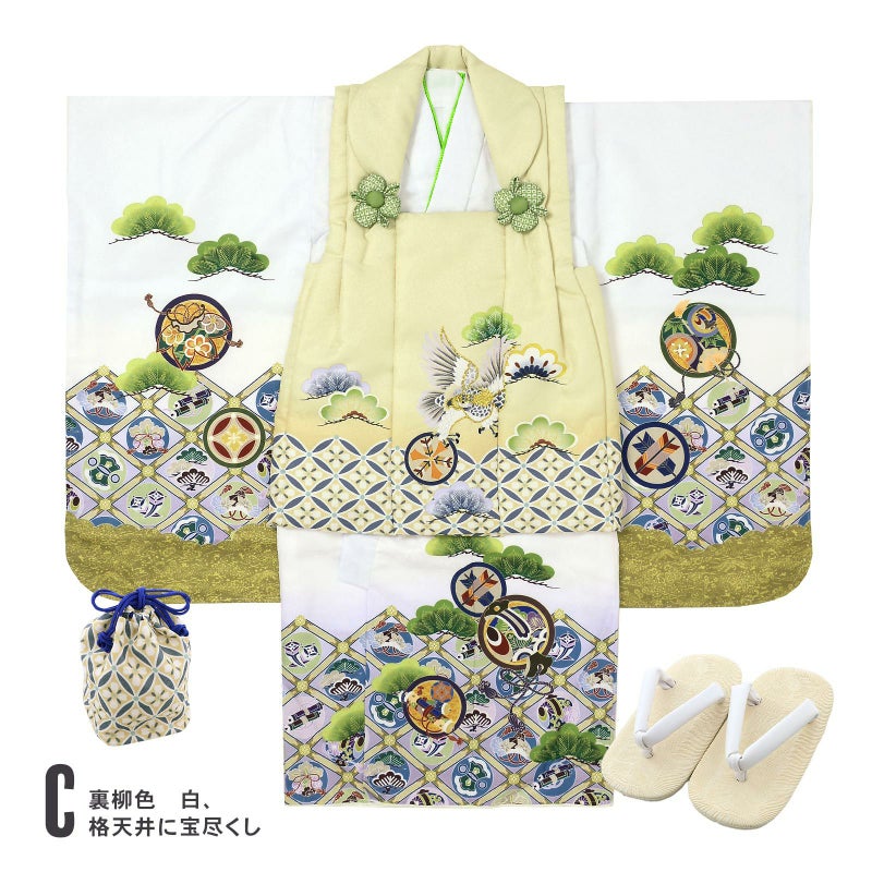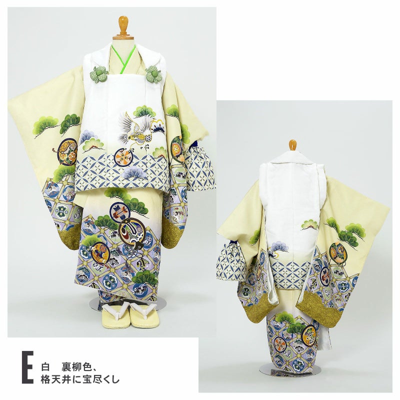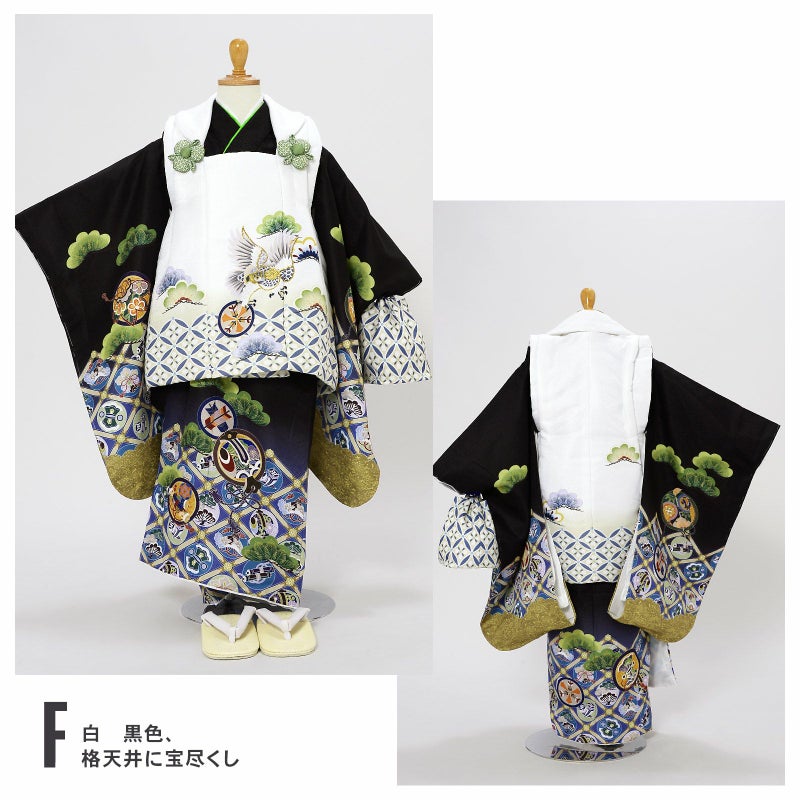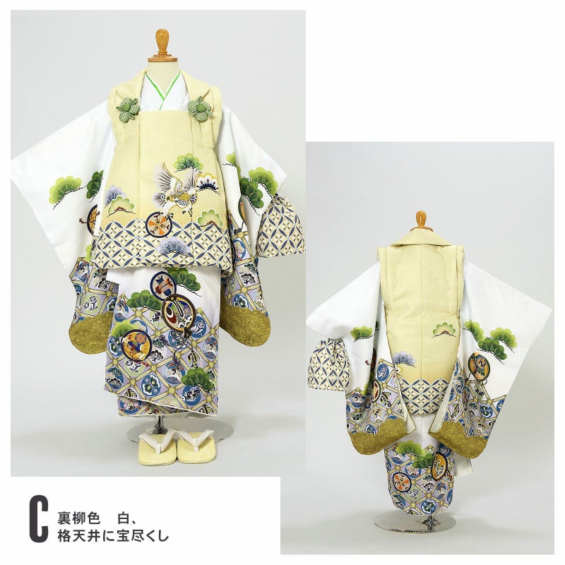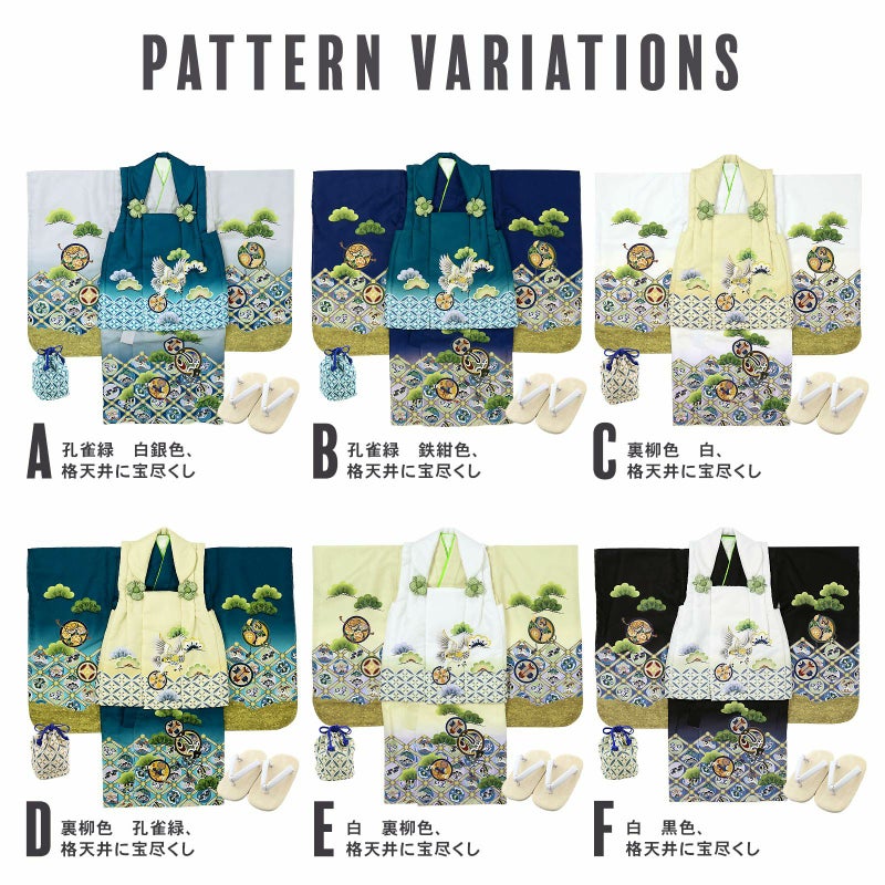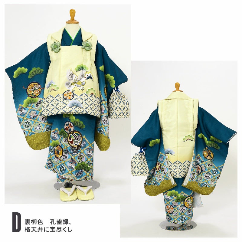 5. 【Prices down2】七五三 着物 3歳 男の子 被布セット「孔雀緑 白銀色・孔雀緑 鉄紺色・裏柳色 白・裏柳色 孔雀緑・白 裏柳色・白 黒色、格天井に宝尽くし」三歳男児被布セット 子供着物 フルセット 三才のお祝い着 3才向け【メール便不可】ss2509kkd15