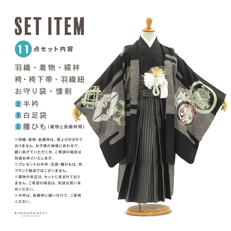 【商品内容】羽織・着物・襦袢・袴・袴下帯・羽織紐・お守り袋・懐剣・半衿(プレゼント)・足袋(プレゼント)・腰ひも2本(プレゼント)の計11点