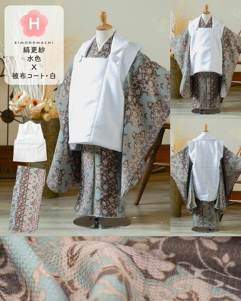 E.ミモザに立涌 灰青×被布コート 白
