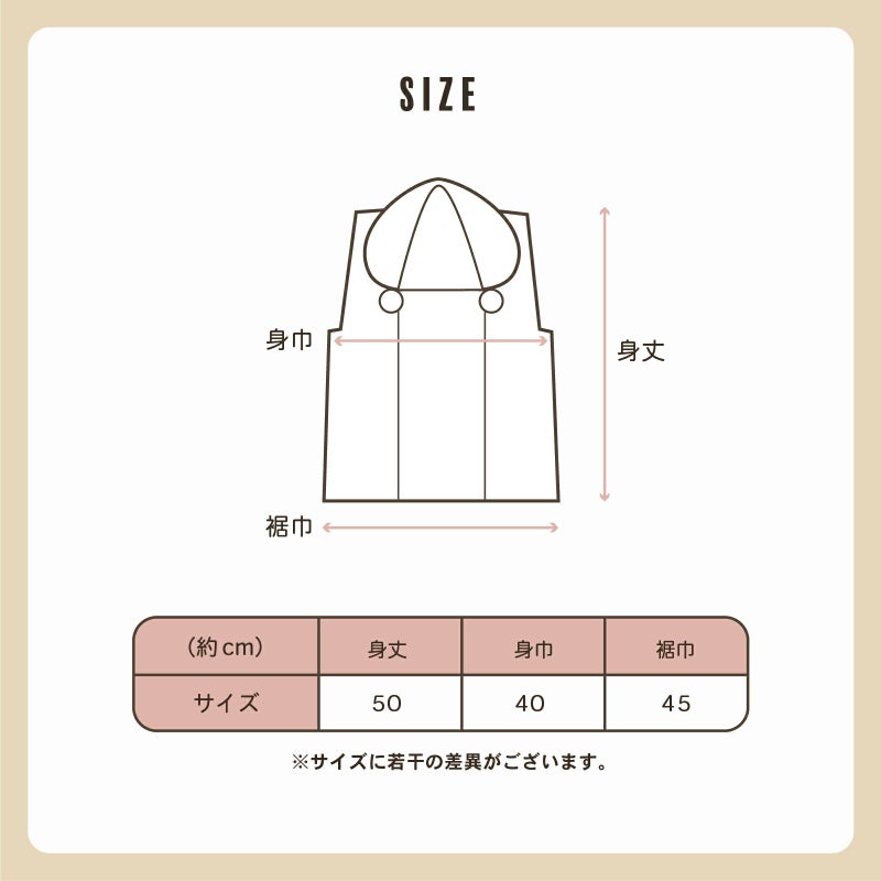 身丈:約50cm / 身巾:約40cm / 裾巾:約45cm