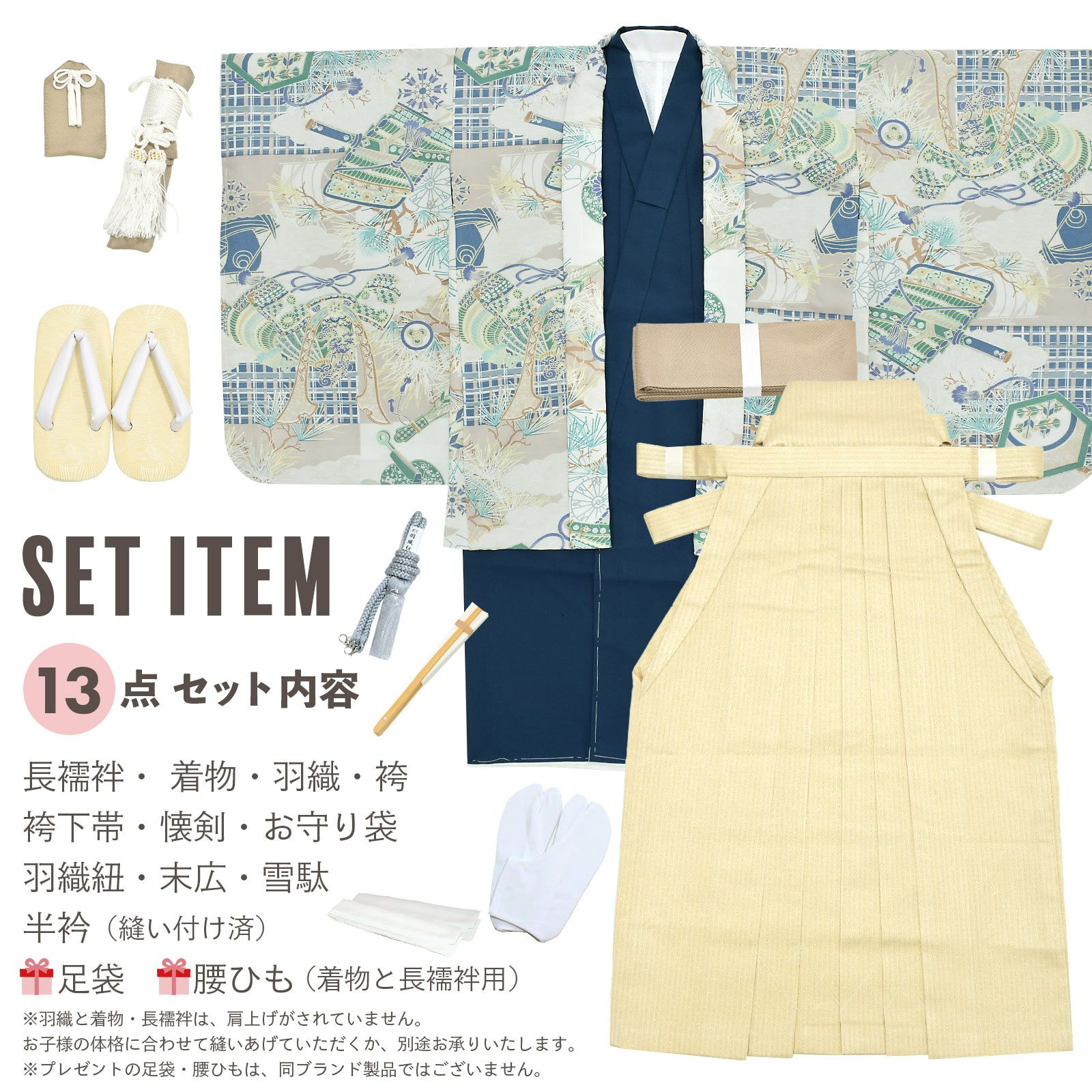 他の画像を見る 送料無料 七五三の男の子に、5歳~7歳の卒園式に 袴セット 七五三 着物 男の子 5歳 羽織袴セット「ベージュ×ネイビー 格子に武具」フルセット 5歳向け 5才 五歳 男児用 着物セット 子供着物 五才のお祝い着【メール便不可】 きもの町価格 ¥ 103,950 税込 カートに入れる お気に入りに登録する