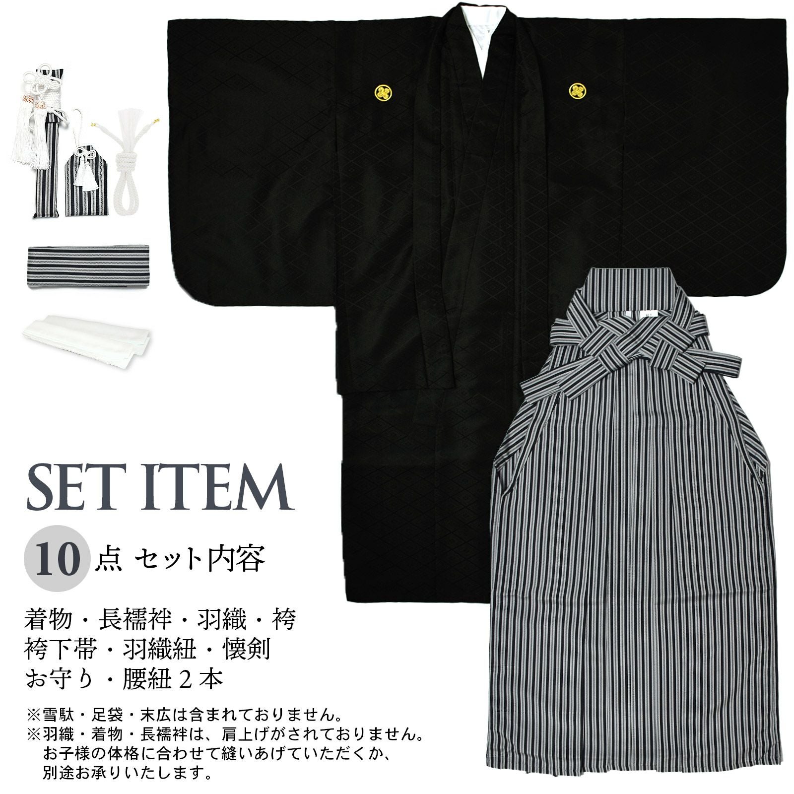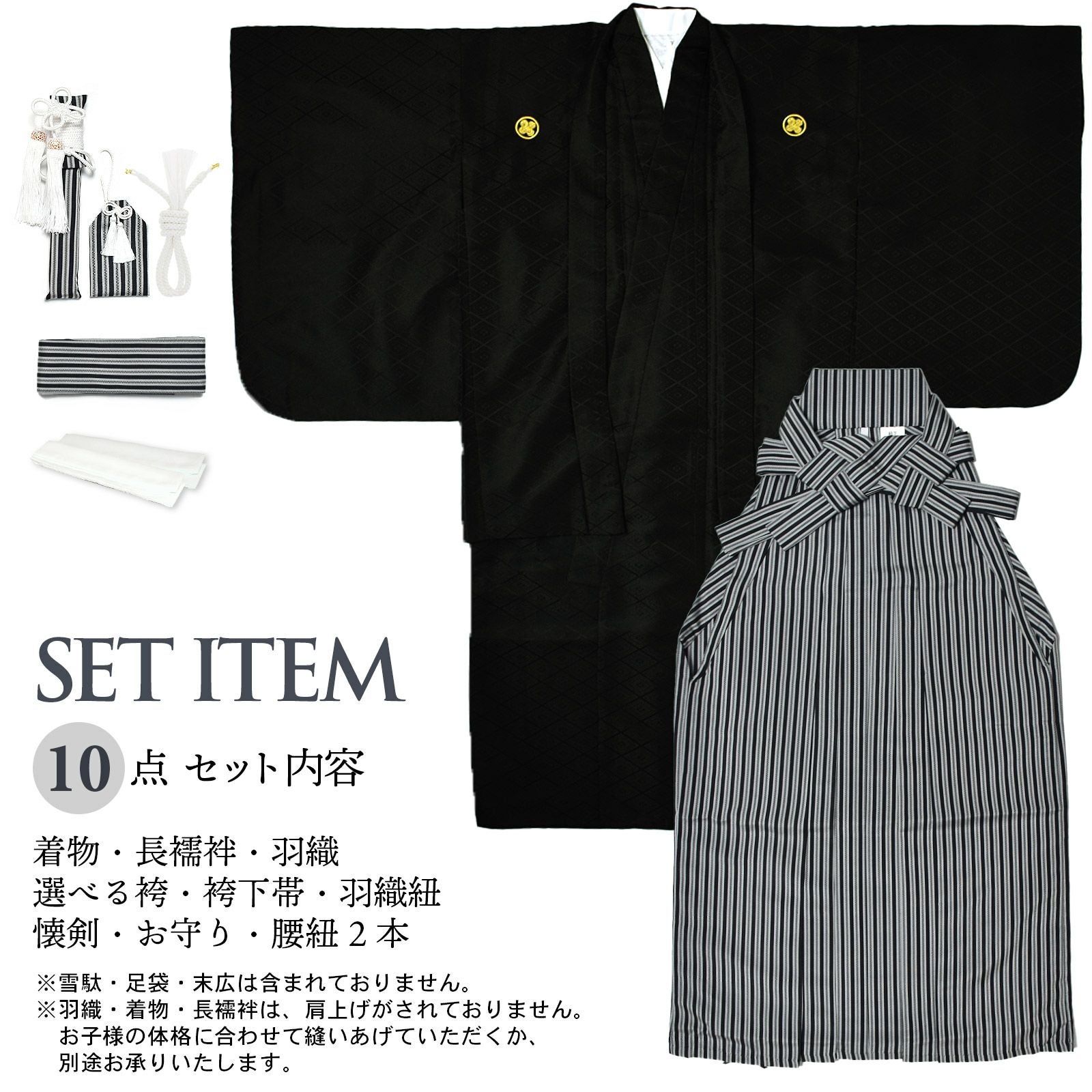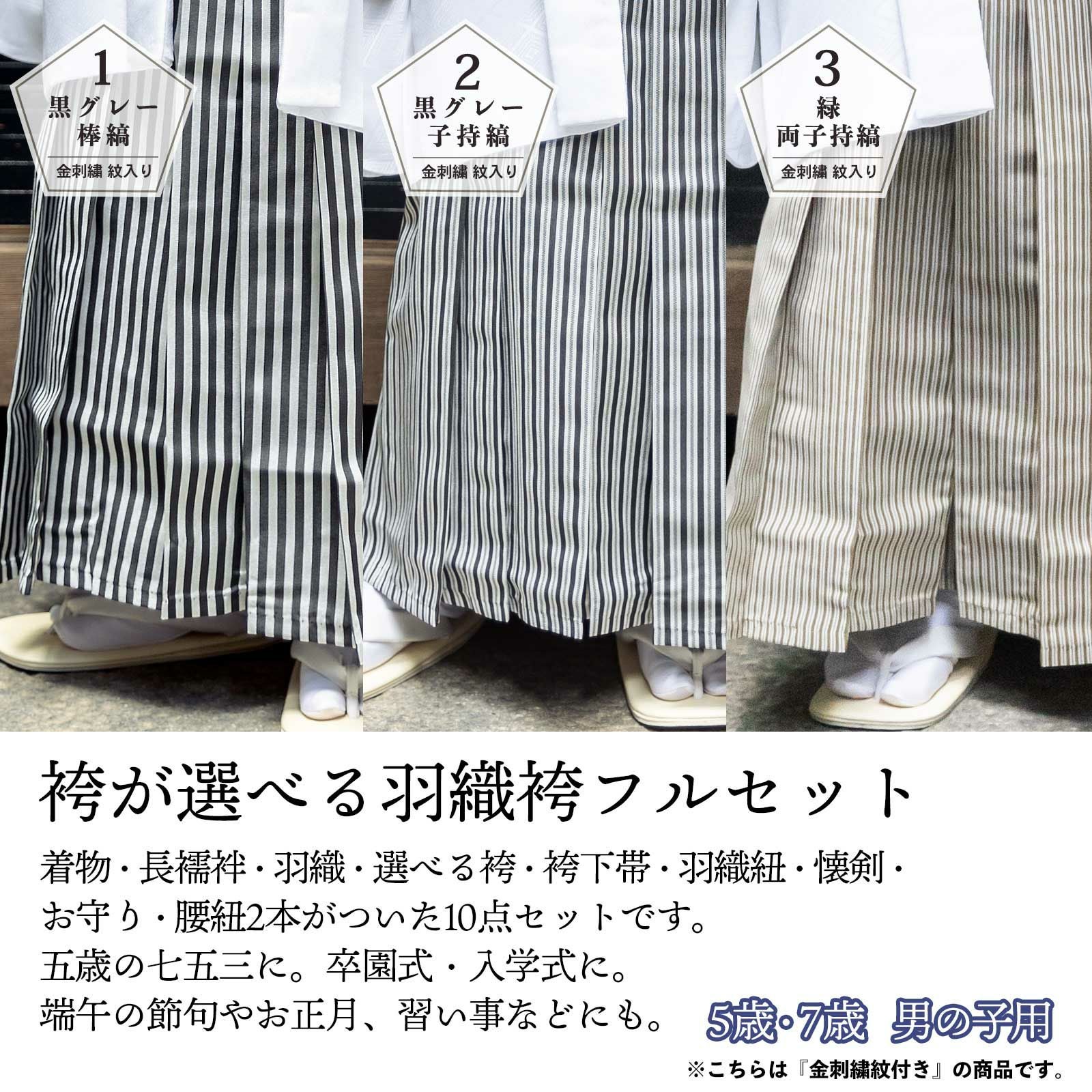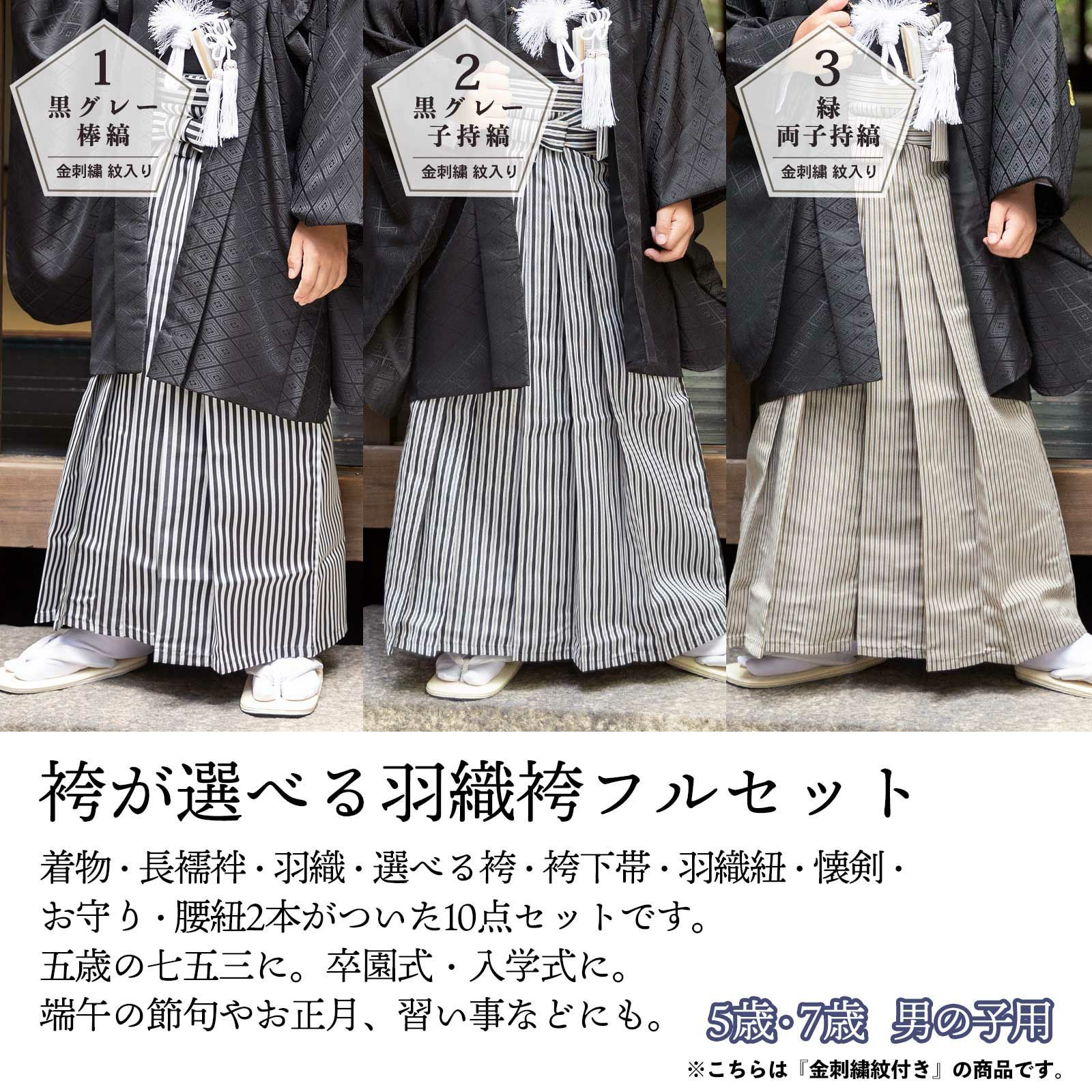 他の画像を見る 送料無料 七五三の男の子に 袴セット 七五三 男の子 5歳 7歳 金刺繍紋入り 袴が選べる羽織袴セット 「黒 菱、金刺繍紋 + 縞袴」 卒園式 入学式 端午の節句 フルセット 5才 7才 五歳 七歳 男児用 着物セット 子供着物 お祝い着 【メール便不可】 きもの町価格 ¥ 28,215 税込 カートに入れる お気に入りに登録する