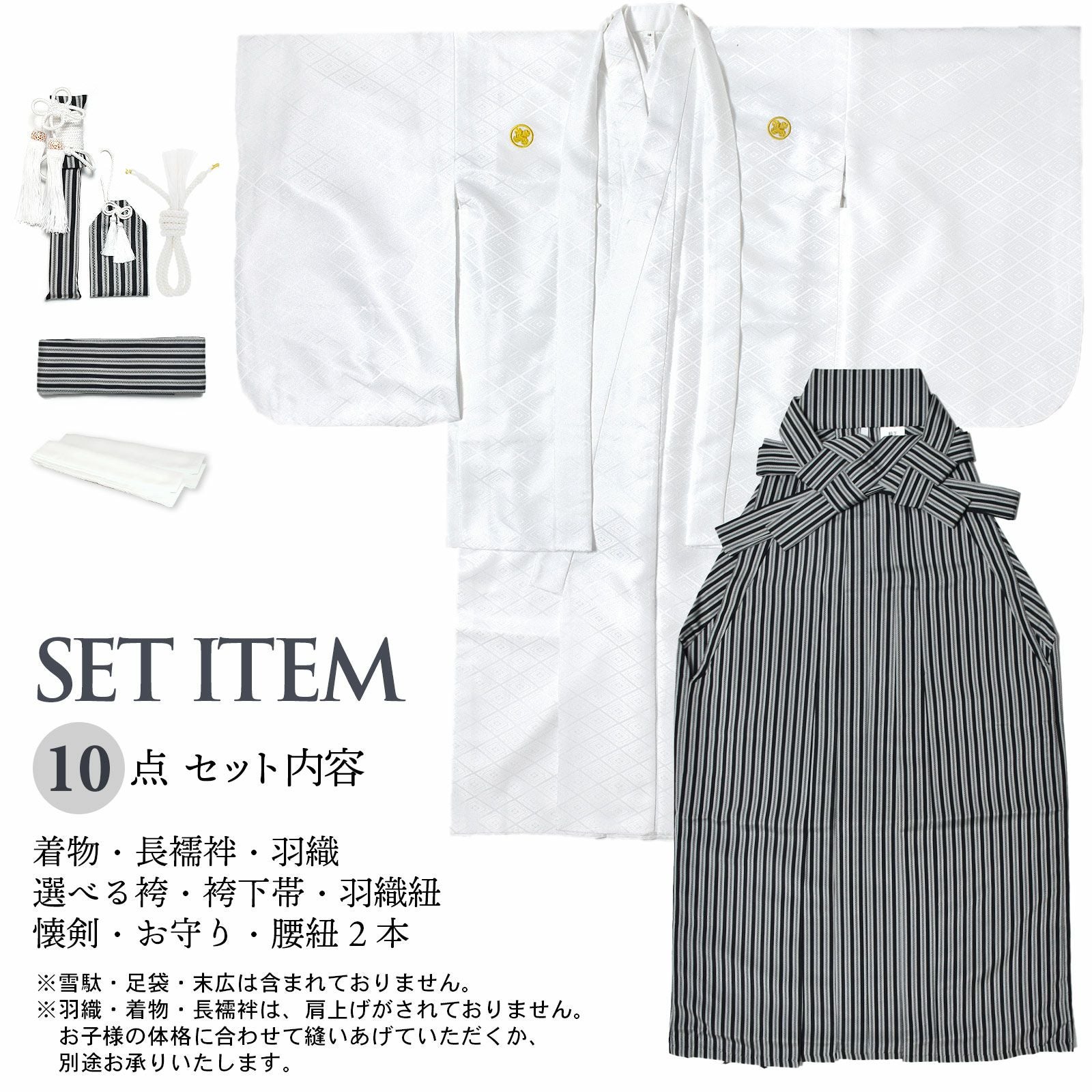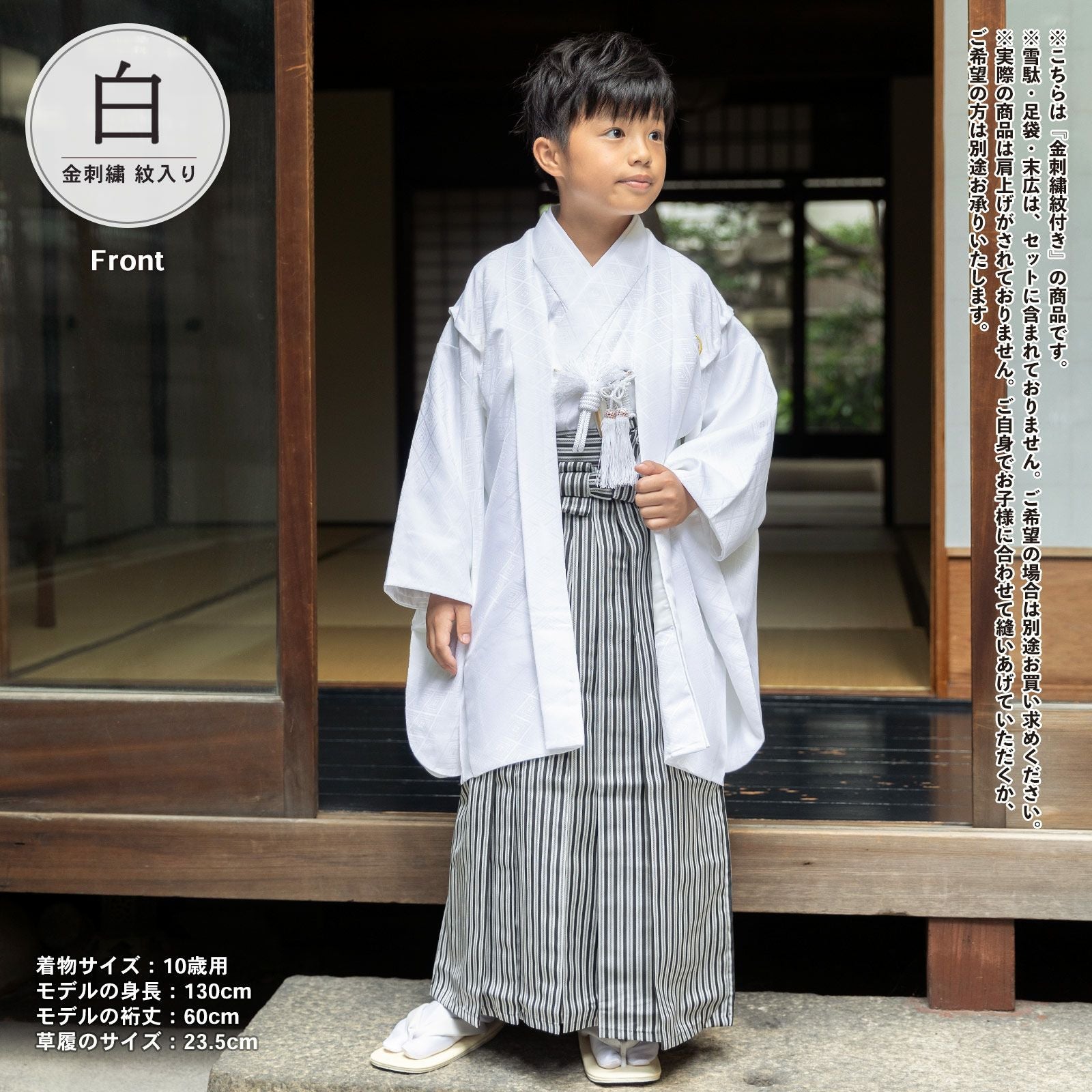 他の画像を見る 送料無料 七五三の男の子に 袴セット 七五三 男の子 5歳 7歳 金刺繍紋入り 袴が選べる羽織袴セット 「白 菱、金刺繍紋 + 縞袴」 卒園式 入学式 端午の節句 フルセット 5才 7才 五歳 七歳 男児用 着物セット 子供着物 お祝い着 【メール便不可】 きもの町価格 ¥ 28,215 税込 カートに入れる お気に入りに登録する