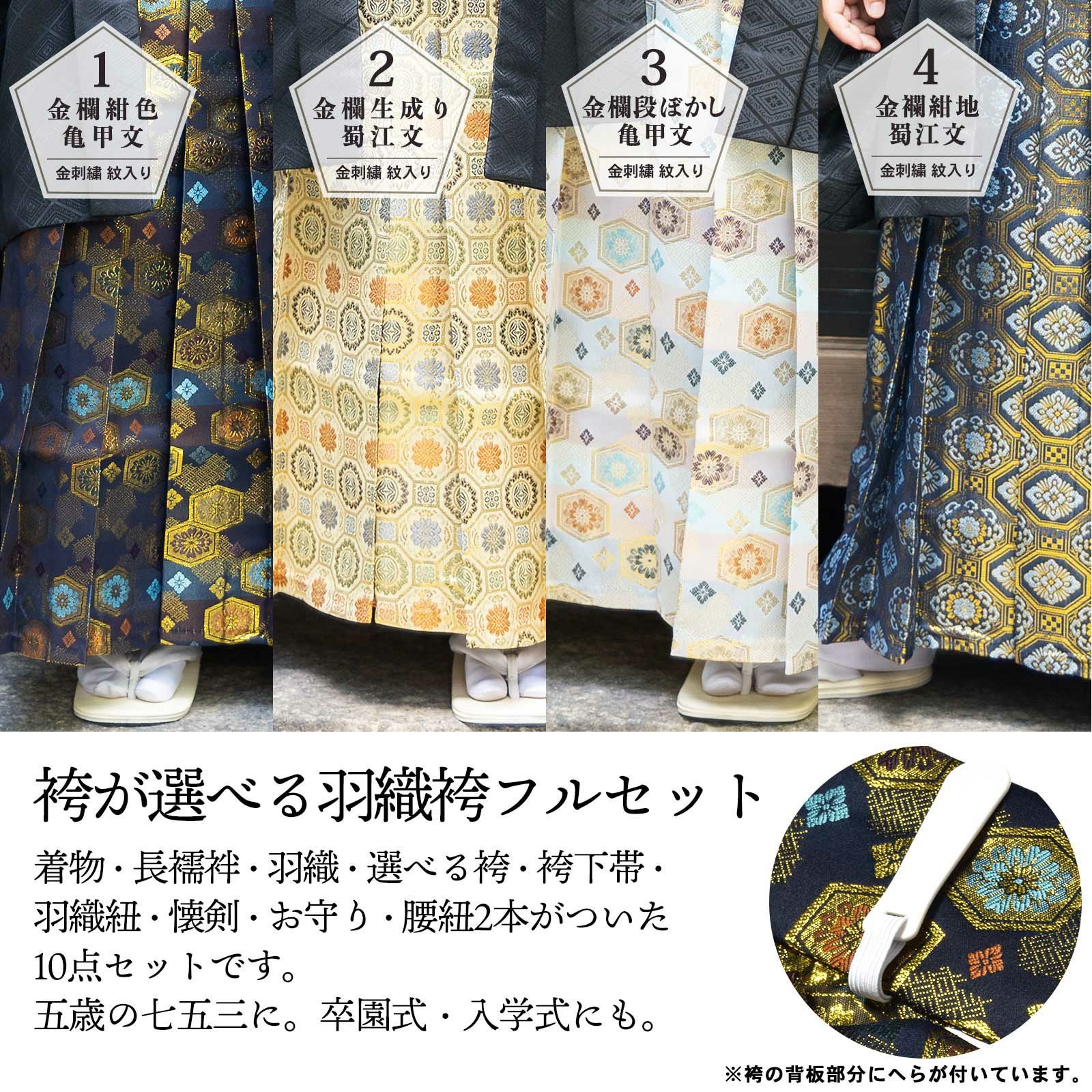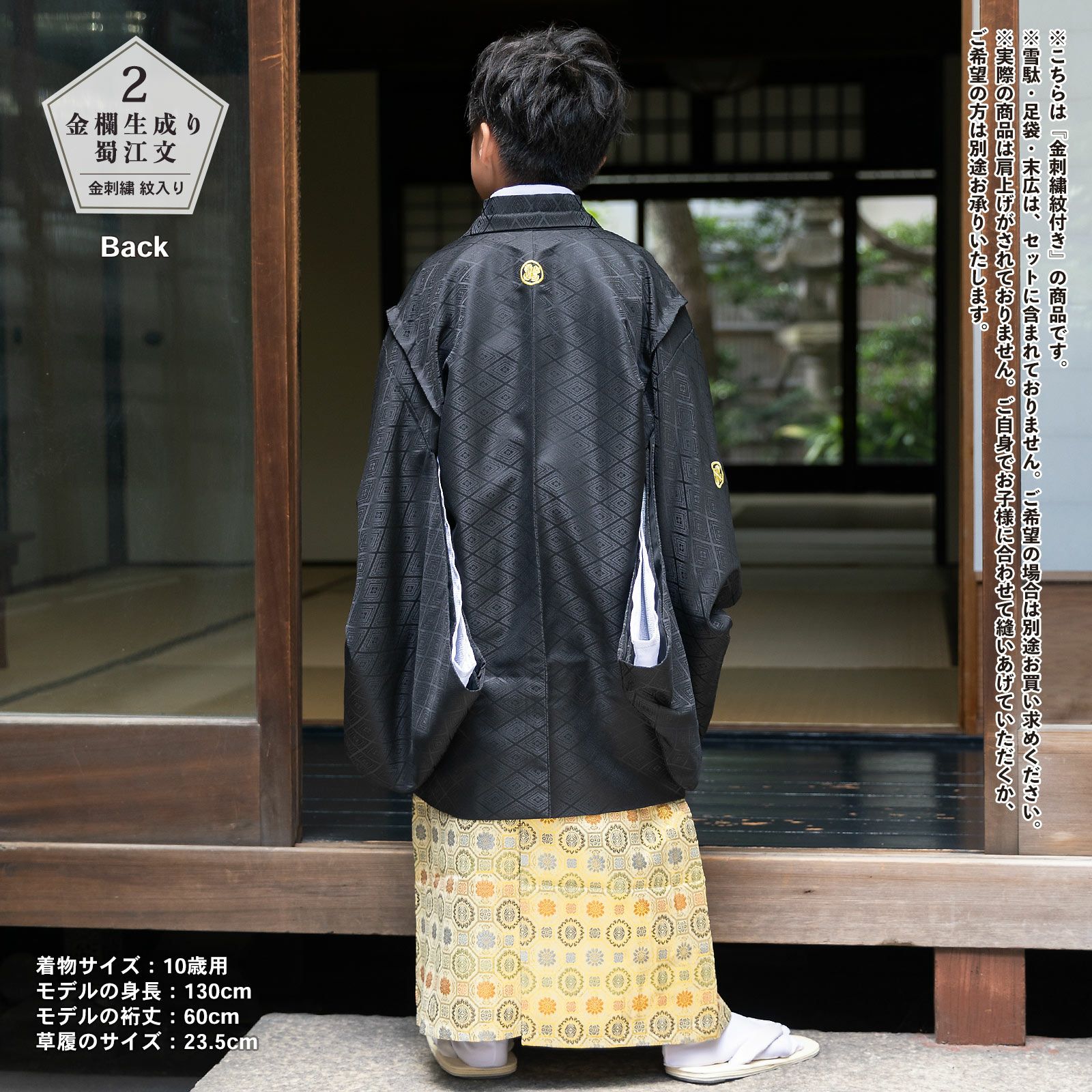 他の画像を見る 送料無料 七五三の男の子に 袴セット 七五三 男の子 5歳 7歳 金刺繍紋入り 袴が選べる羽織袴セット 「黒 菱、金刺繍紋 + 金襴袴」 卒園式 入学式 端午の節句 フルセット 5才 7才 五歳 七歳 男児用 着物セット 子供着物 お祝い着 【メール便不可】 きもの町価格 ¥ 29,755 税込 カートに入れる お気に入りに登録する