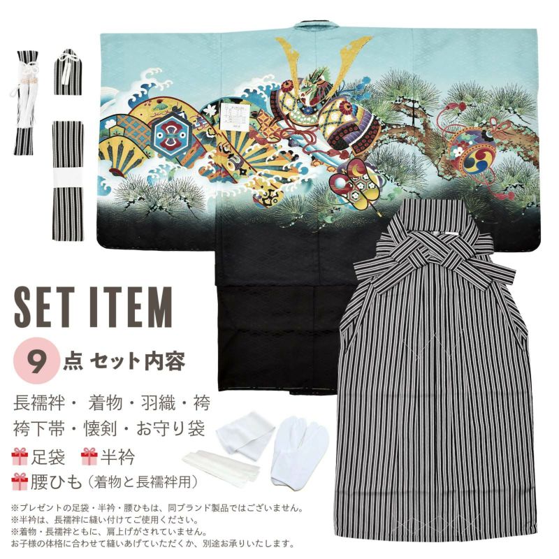 5歳、7歳の男の子の七五三に。5才、6才の卒園式に。着付けに必要なものが揃ったフルセットでお届けいたします。七五三(3才、数えの5才、満5才)、端午の節句、お正月に!