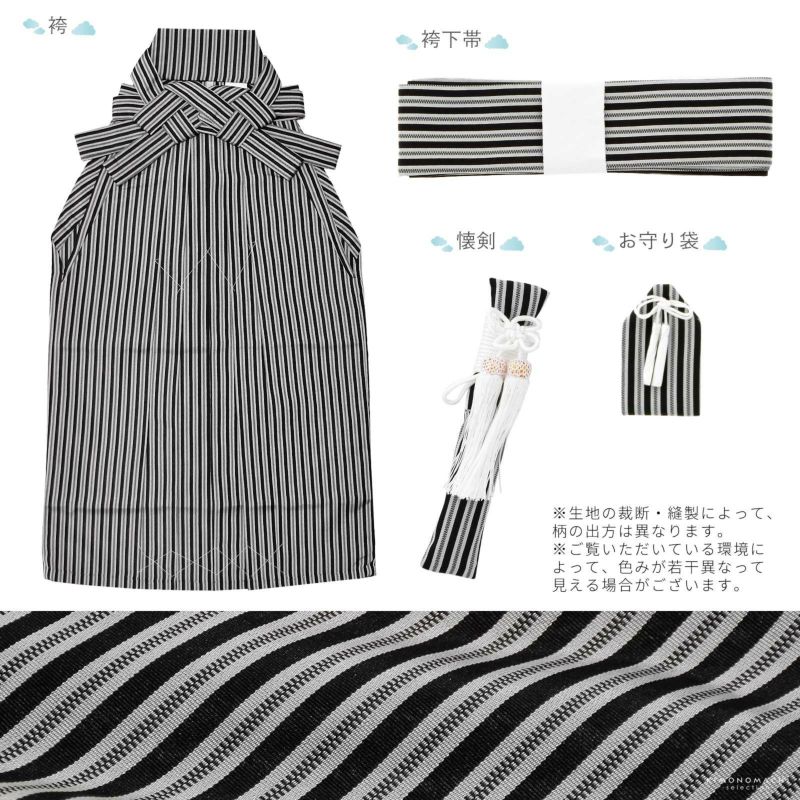 袴は黒×淡いグレーの子持ち縞模様。
