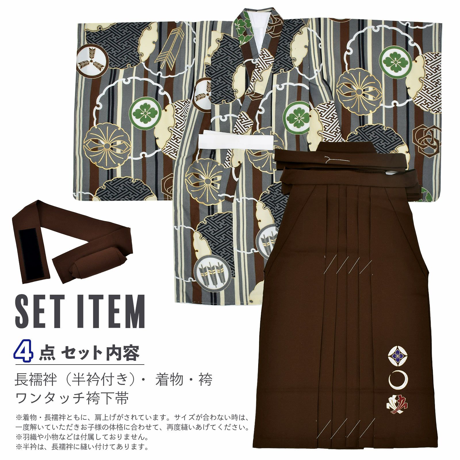 【商品内容】着物・長襦袢(半衿付き)・袴・ワンタッチ袴下帯の計4点