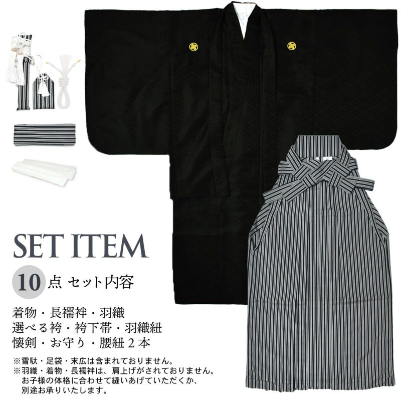 【商品内容】着物、長襦袢、羽織、選べる袴、袴下帯、羽織紐、懐剣、お守り、腰紐2本