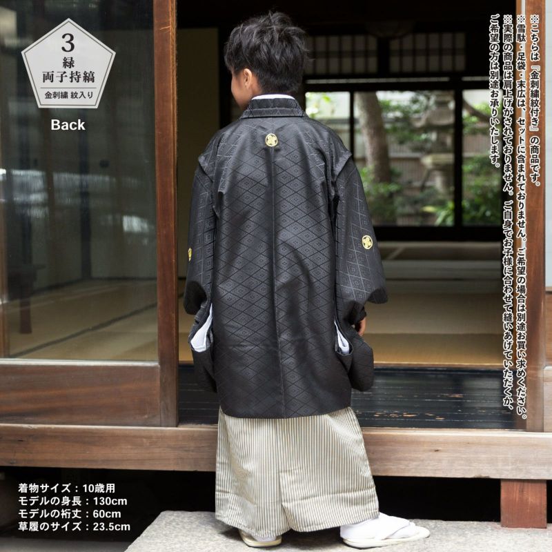 5歳、7歳の男の子の七五三に。羽織に金の刺繍紋が入った袴セットです。七五三、卒園式、入学式、端午の節句、お正月に!