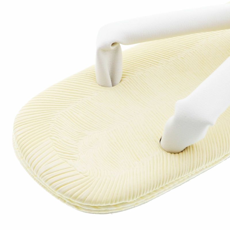 七五三のお参りや結婚式・卒園式・卒業式などお祝い事の和装に使われる、定番の白い台に白い鼻緒の子供用雪駄です。