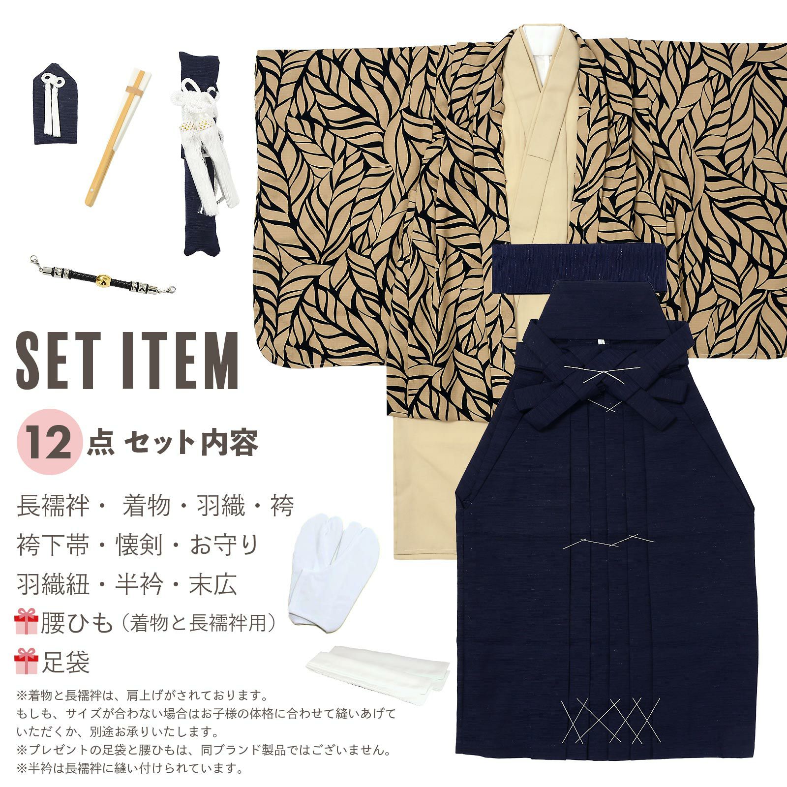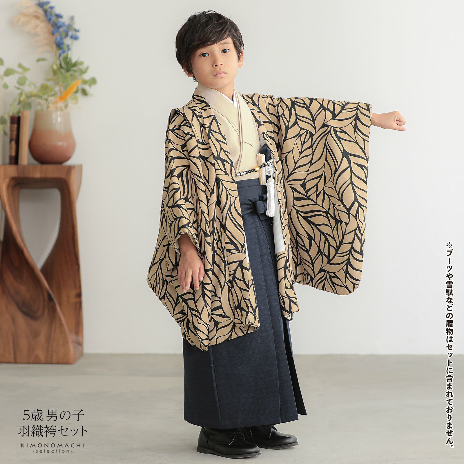 他の画像を見る 送料無料 七五三の男の子に、5歳~7歳の卒園式に 袴セット 七五三 着物 男の子 5歳 羽織袴セット「ベージュ リーフ」フルセット 5歳向け 5才 五歳 男児用 着物セット 子供着物 五才のお祝い着【メール便不可】 きもの町価格 ¥ 152,460 税込 カートに入れる お気に入りに登録する