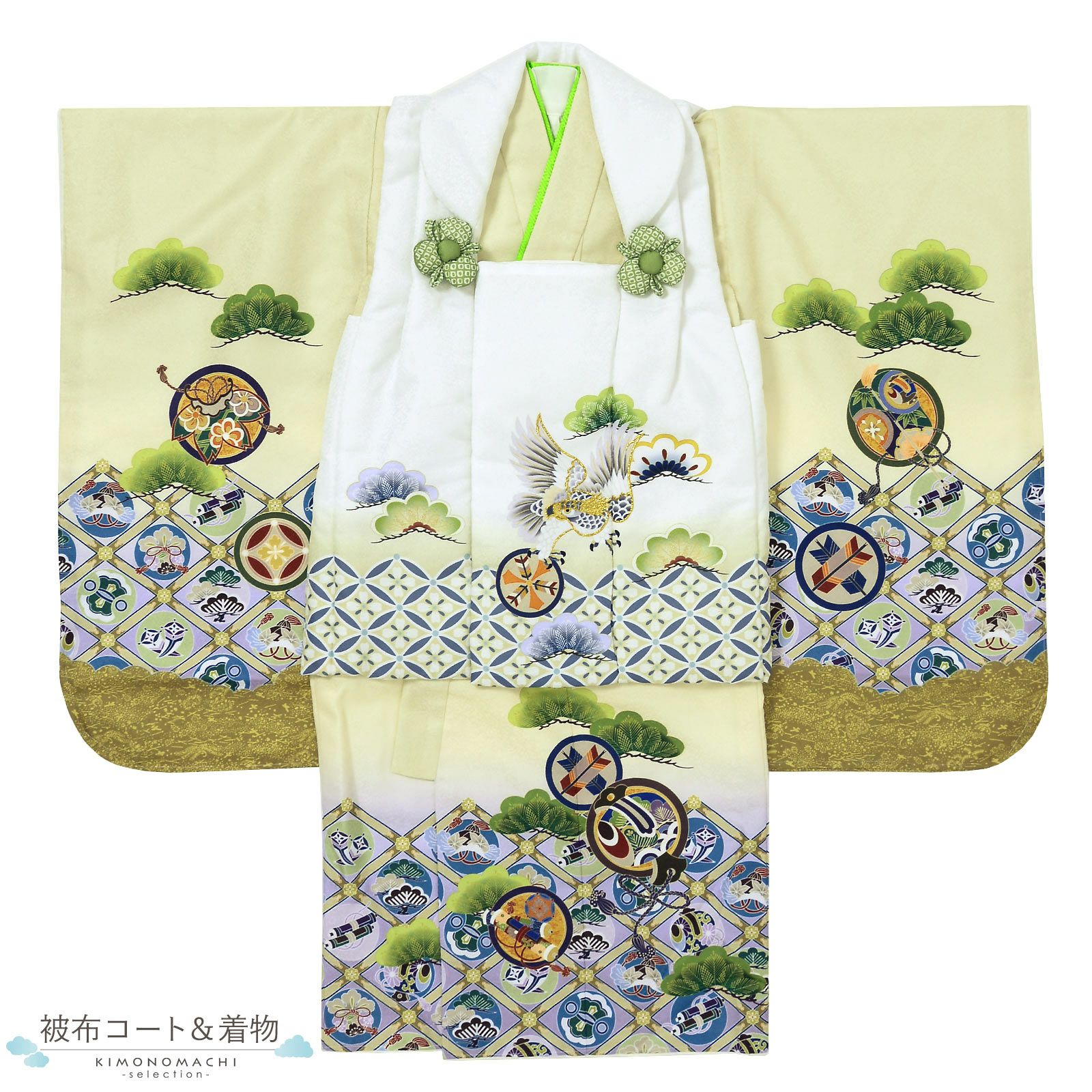 他の画像を見る 送料無料 3歳の男の子の七五三に 男児用被布セット お正月や端午の節句にも 七五三 着物 3歳 男の子 被布セット「オフホワイト 向い鶴に桐」日本製 三歳男児被布セット 子供着物 フルセット 三才のお祝い着 3才向け【メール便不可】 きもの町価格 ¥ 47,190 税込 カートに入れる お気に入りに登録する