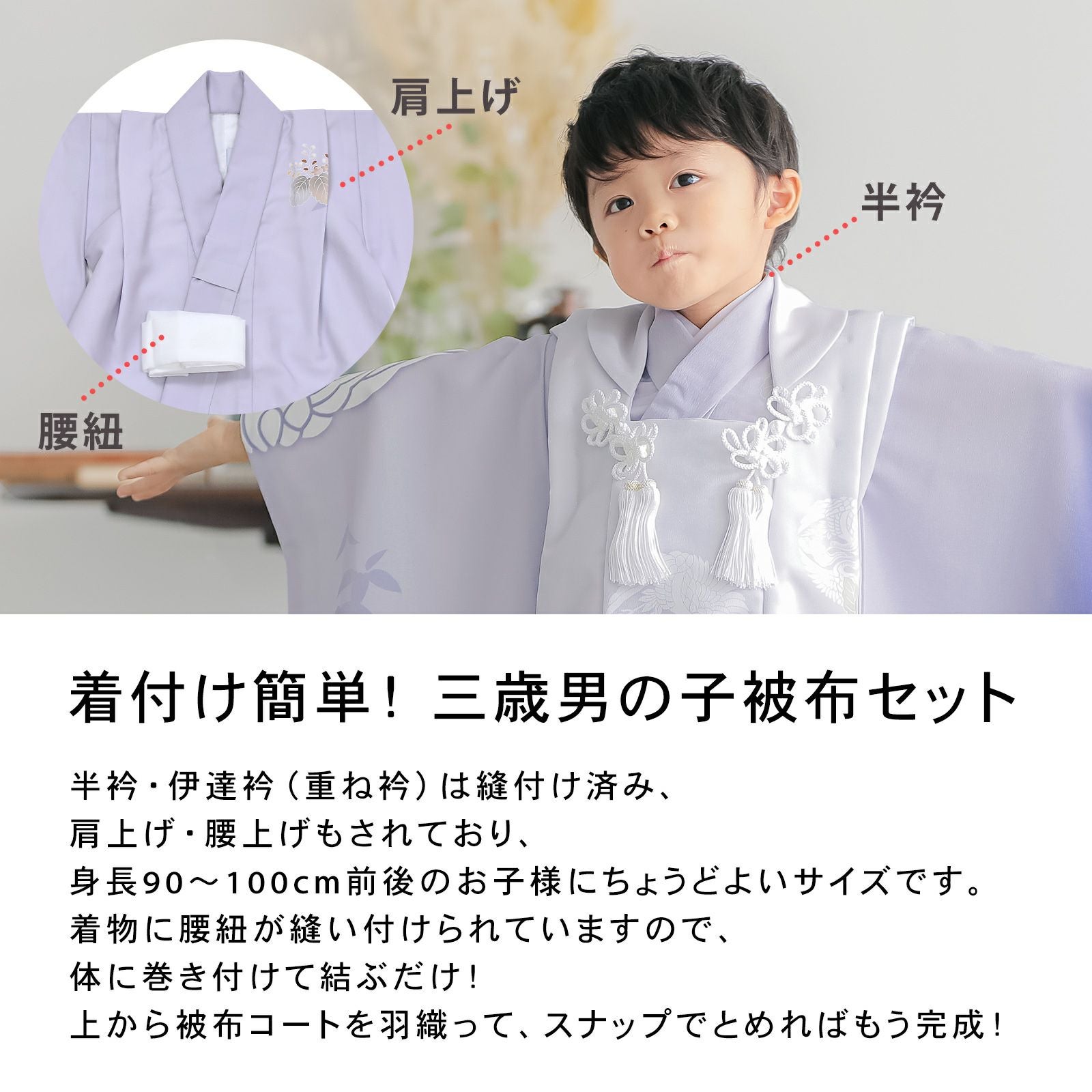 他の画像を見る 送料無料 3歳の男の子の七五三に 男児用被布セット お正月や端午の節句にも 七五三 着物 3歳 男の子 被布セット「ブルーラベンダー 向い鶴に桐」日本製 三歳男児被布セット 子供着物 フルセット 三才のお祝い着 3才向け【メール便不可】 きもの町価格 ¥ 47,190 税込 カートに入れる お気に入りに登録する