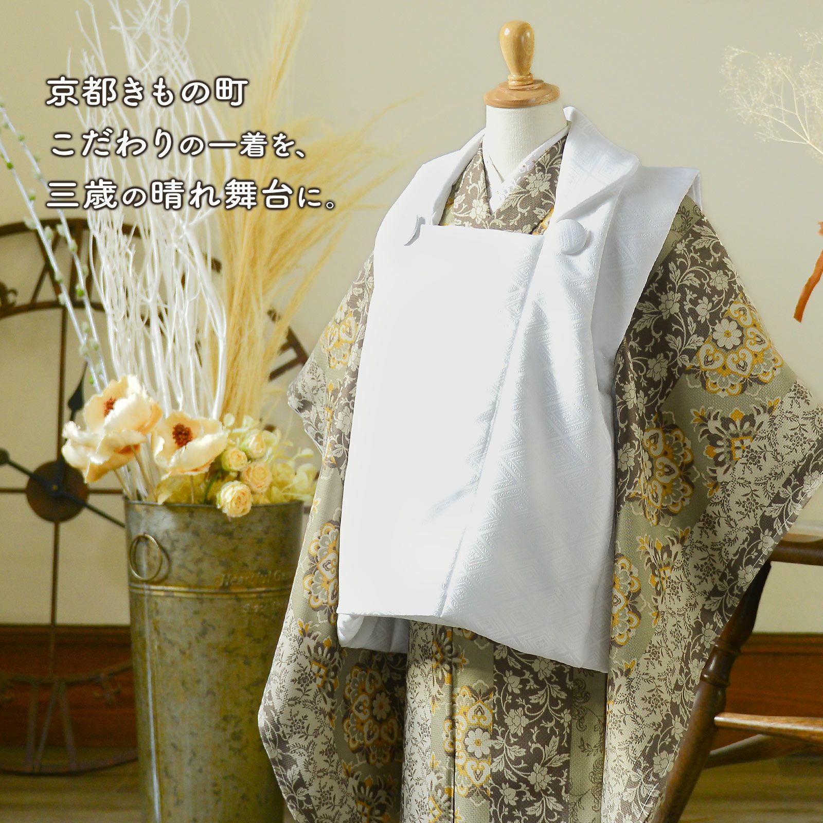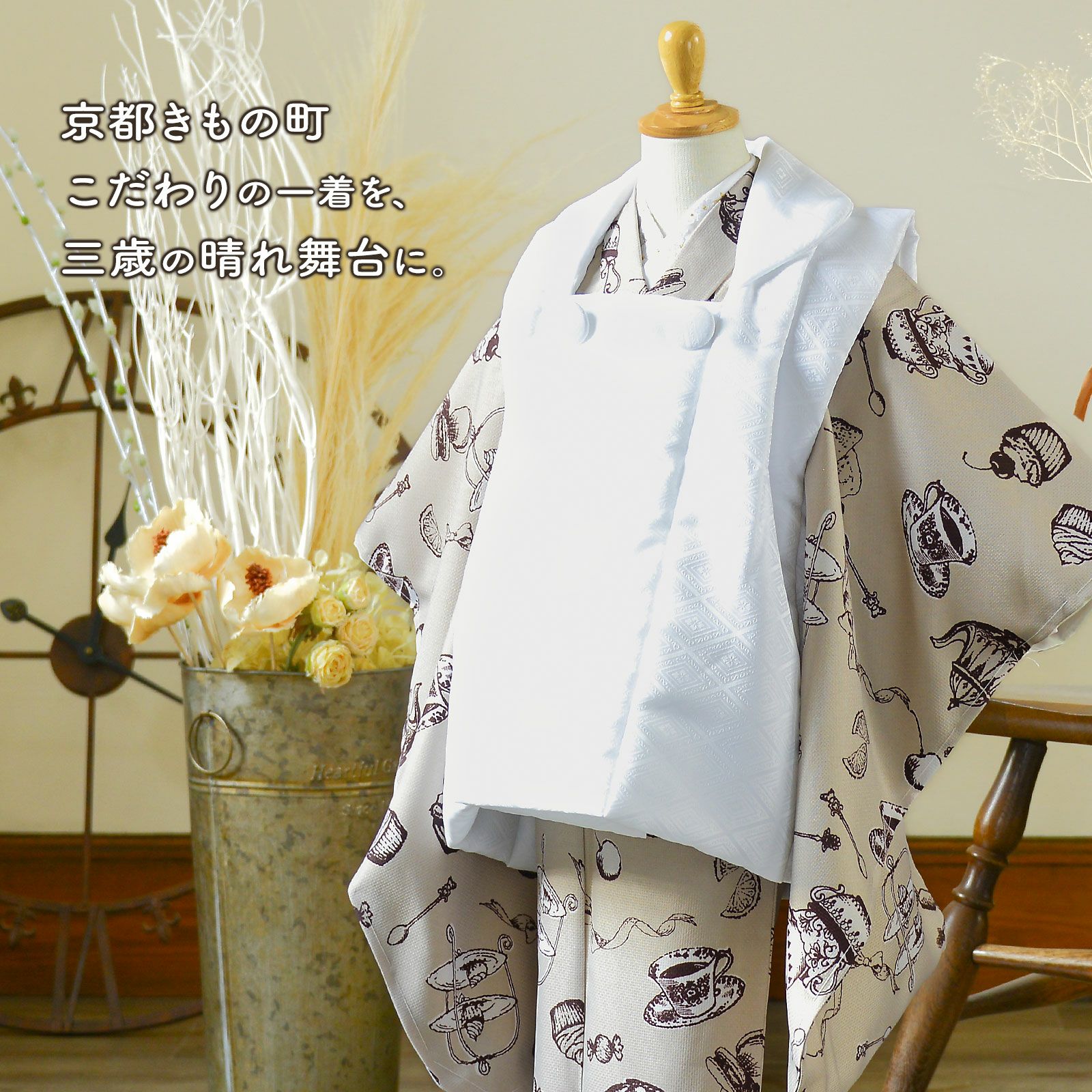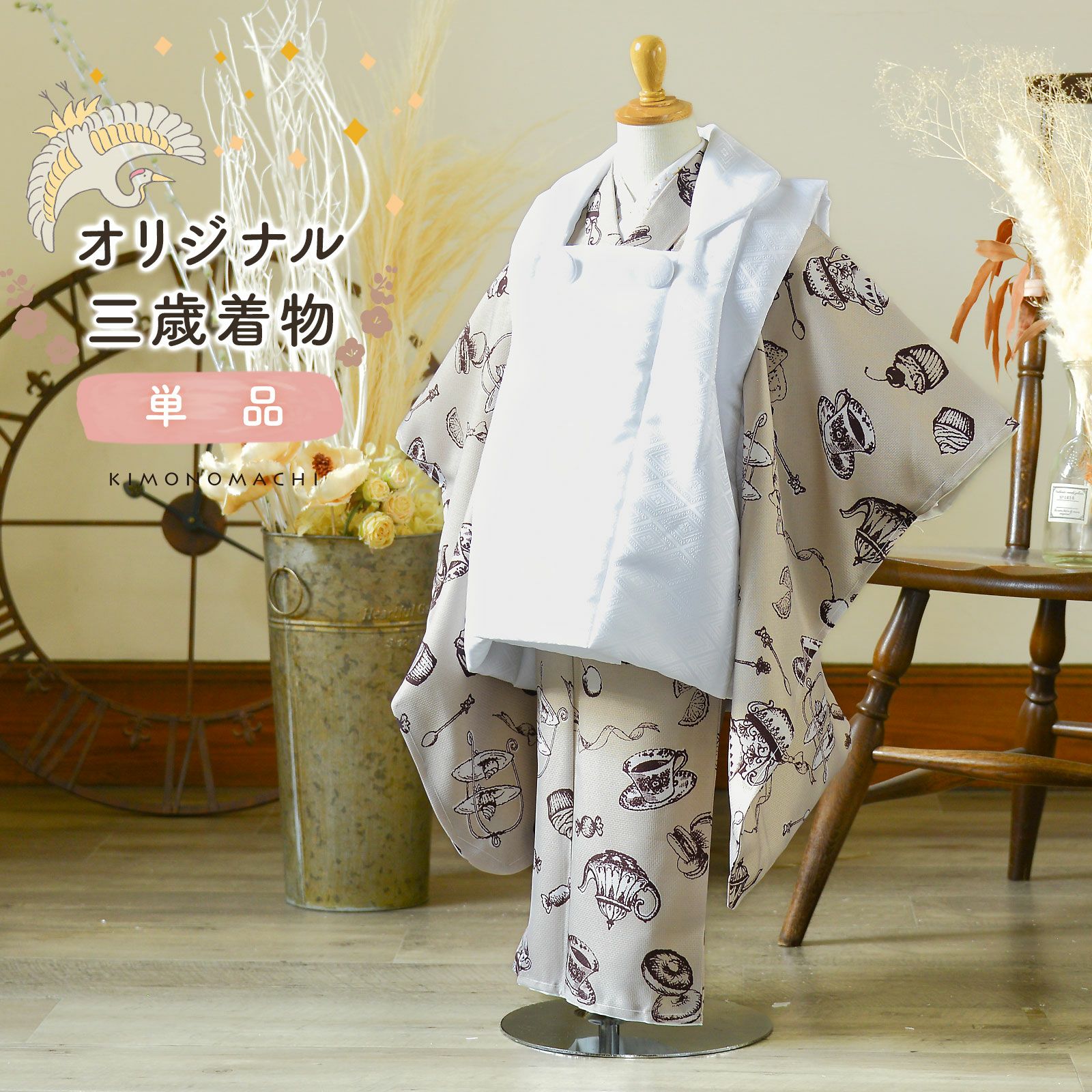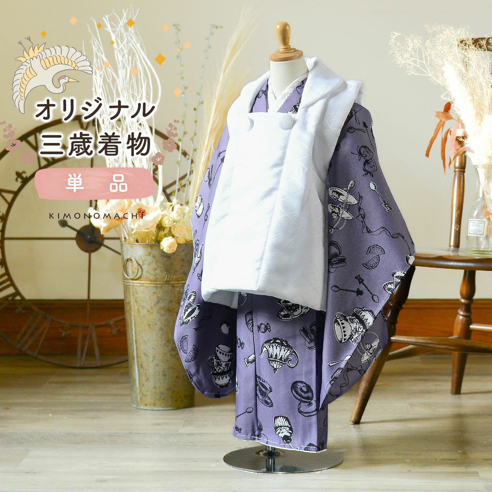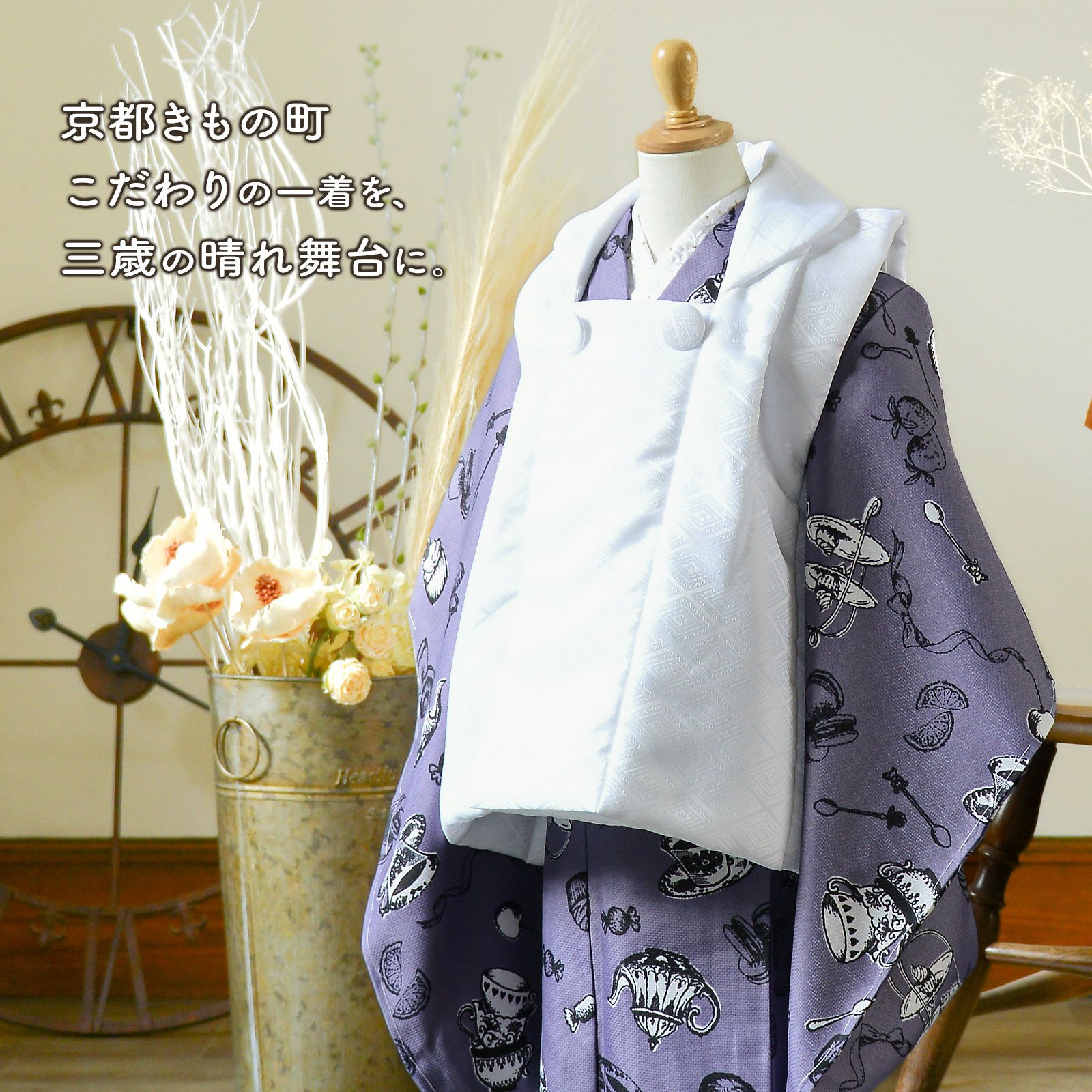 他の画像を見る 送料無料 京都きもの町 こだわりの一着を、三歳の晴れ舞台に。 七五三 3歳 着物 単品「アフタヌーンティー×ウィスタリアグレー」子供着物 三才のお祝い着 3才向け 小紋 KIMONOMACHI オリジナル【メール便不可】 きもの町価格 ¥ 12,100 税込 カートに入れる お気に入りに登録する