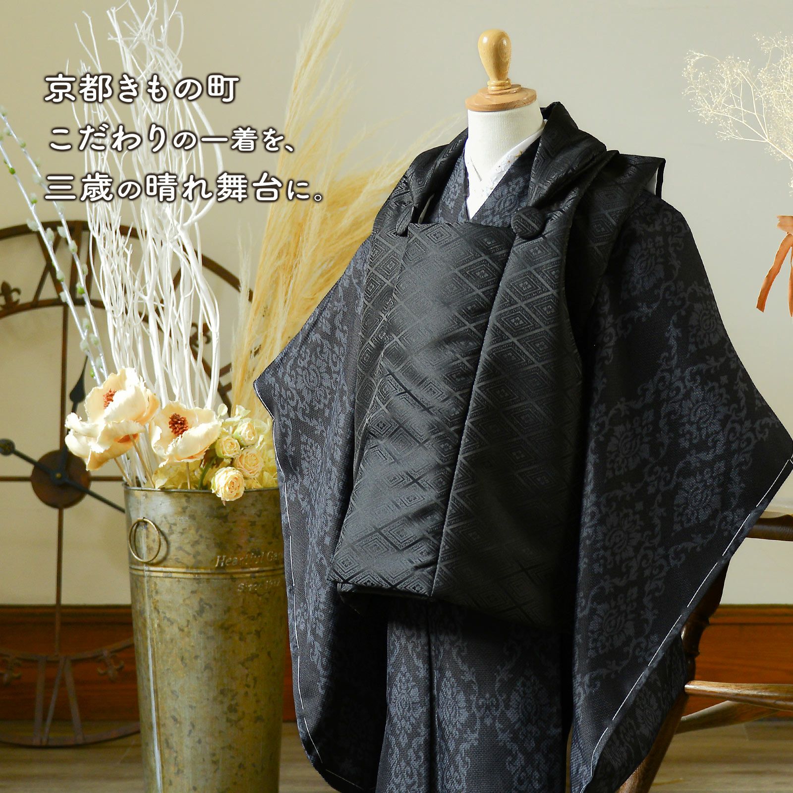 他の画像を見る 送料無料 京都きもの町 こだわりの一着を、三歳の晴れ舞台に。 七五三 3歳 着物 単品「アラベスク ブラック」子供着物 三才のお祝い着 3才向け 小紋 KIMONOMACHI オリジナル【メール便不可】 きもの町価格 ¥ 12,100 税込 カートに入れる お気に入りに登録する
