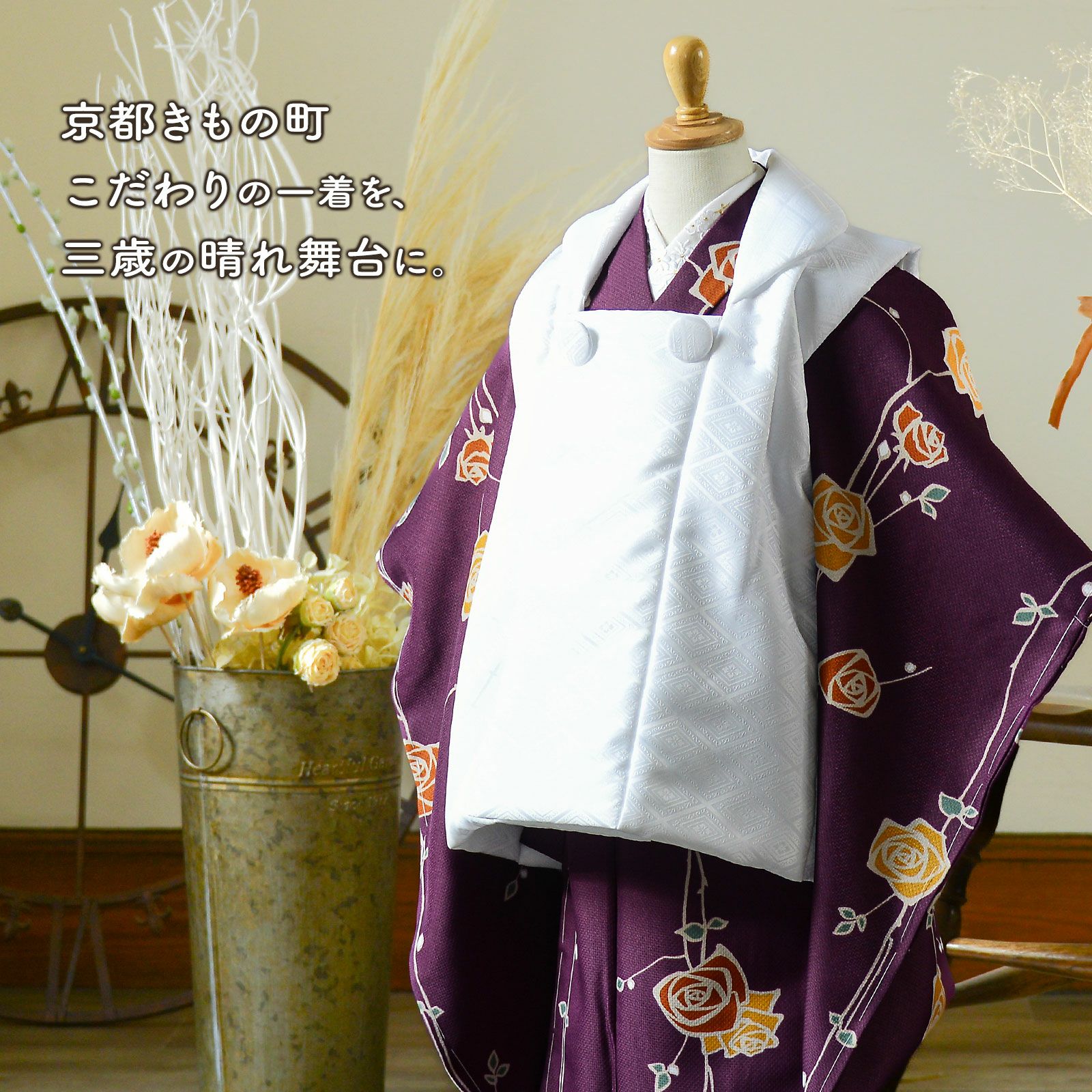 他の画像を見る 送料無料 京都きもの町 こだわりの一着を、三歳の晴れ舞台に。 七五三 3歳 着物 単品「ばら 紫色」子供着物 三才のお祝い着 3才向け 小紋 KIMONOMACHI オリジナル【メール便不可】 きもの町価格 ¥ 12,100 税込 カートに入れる お気に入りに登録する
