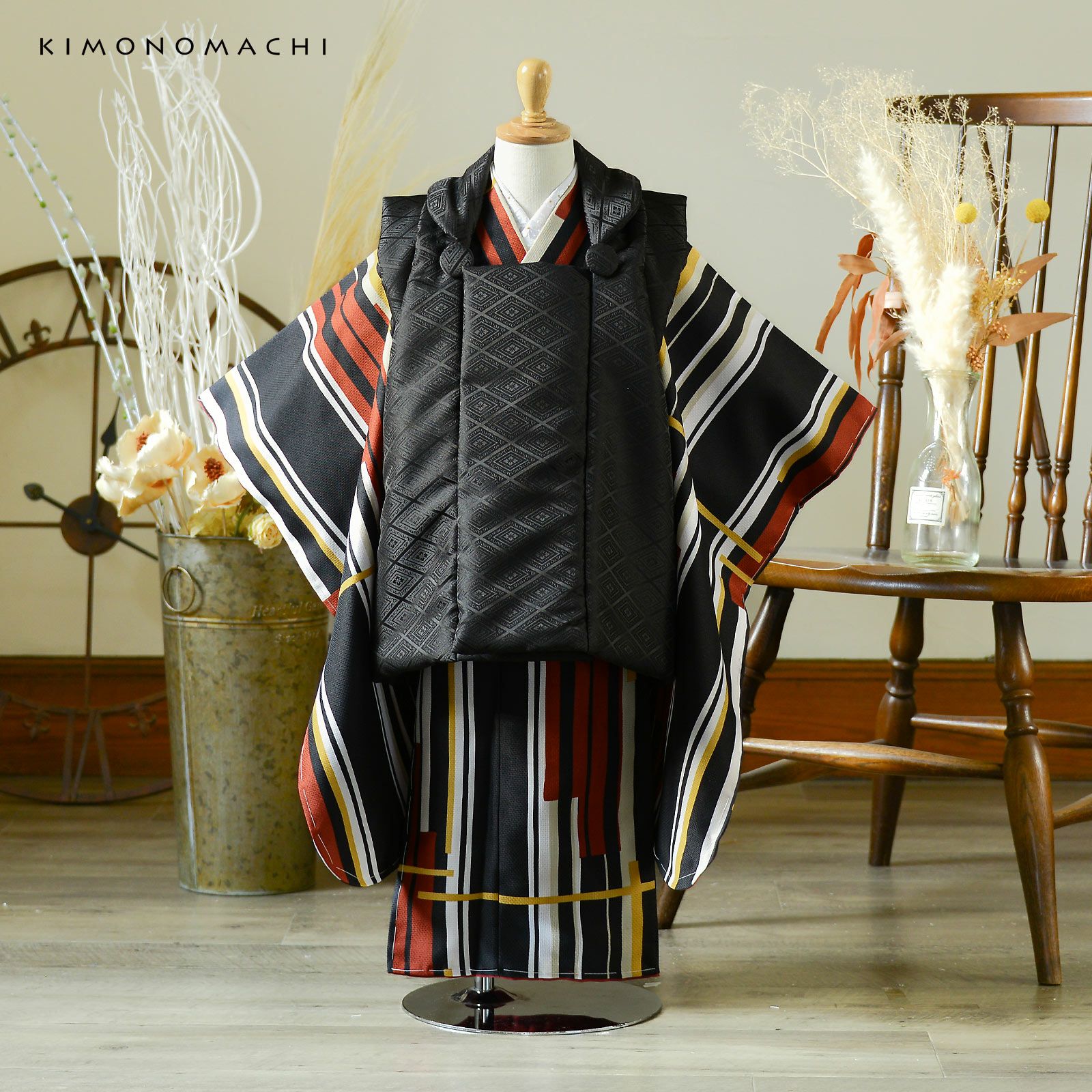 他の画像を見る 送料無料 七五三の男の子に、5歳~7歳の卒園式に 袴セット 七五三 着物 男の子 5歳 羽織袴セット「黒 円相、獅子兜」フルセット 5歳向け 5才 五歳 男児用 着物セット 子供着物 五才のお祝い着【メール便不可】 きもの町価格 ¥ 99,000 税込 カートに入れる お気に入りに登録する