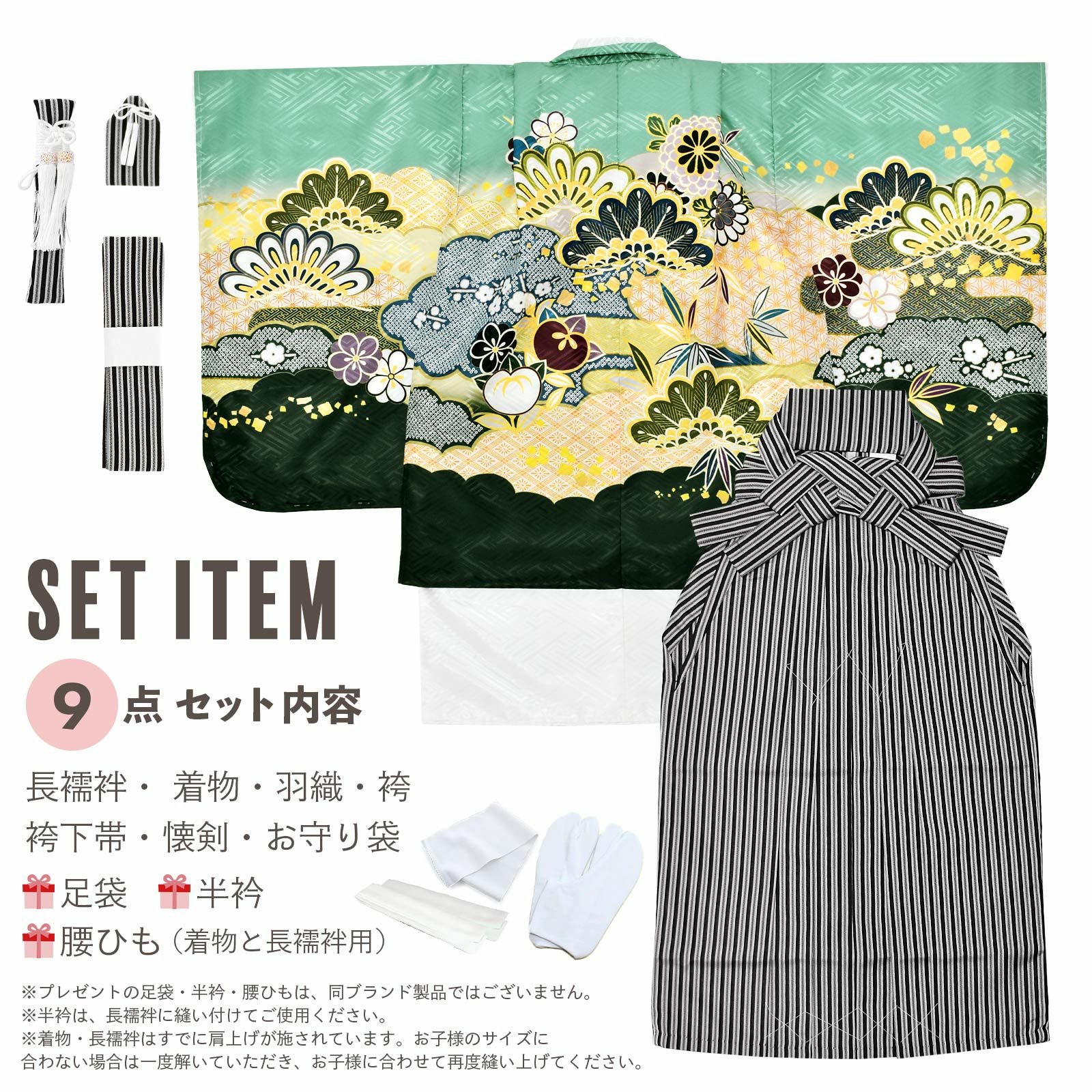 他の画像を見る 送料無料 七五三の男の子に、5歳?7歳の卒園式に 袴セット 七五三 着物 男の子 5歳 羽織袴セット「若葉色 兜に松」フルセット 5歳向け 5才 五歳 男児用 着物セット 子供着物 五才のお祝い着【メール便不可】 きもの町価格 ¥ 54,450 税込 カートに入れる お気に入りに登録する