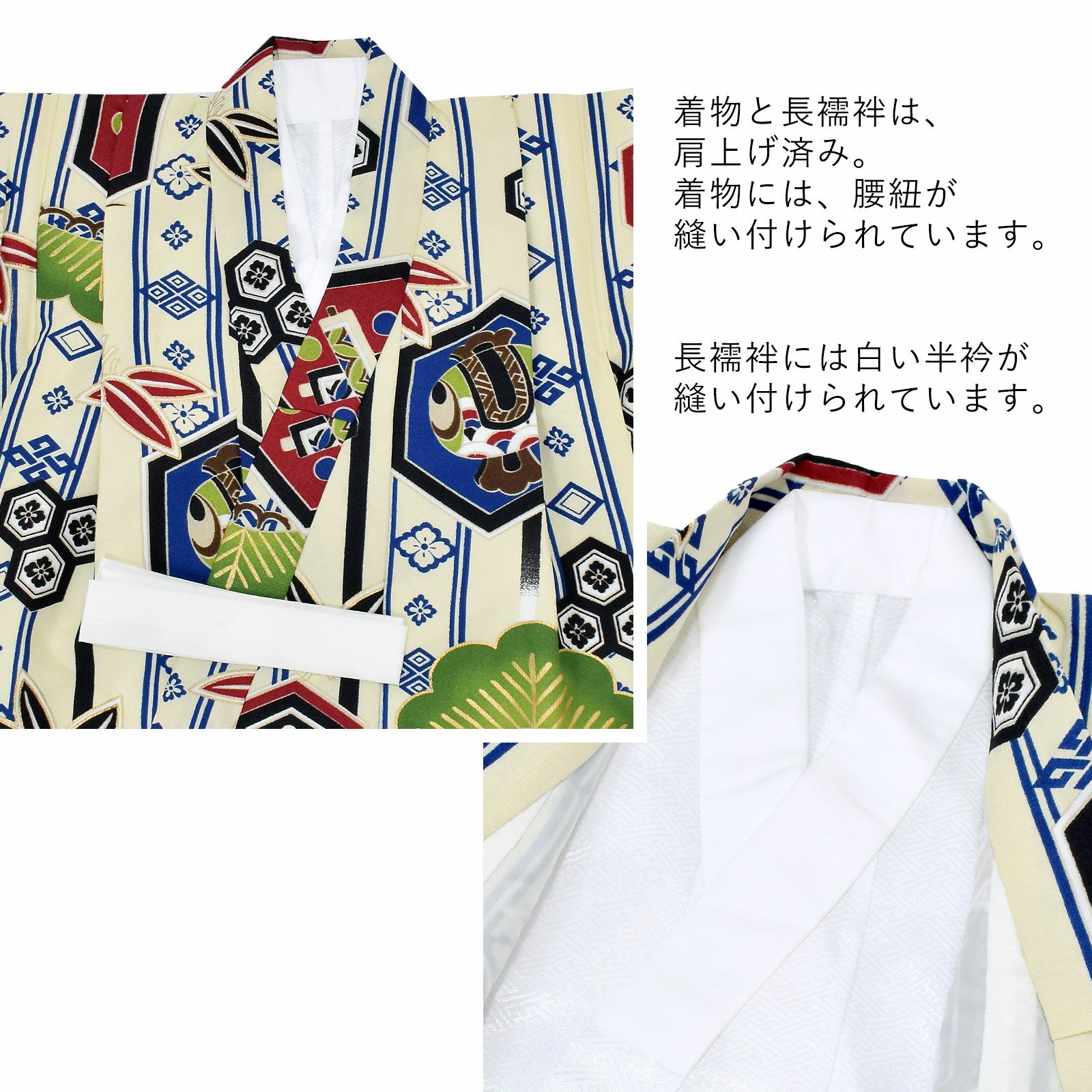 他の画像を見る 送料無料 3歳、5歳の男の子の七五三、節句に 羽織と着物のセット 七五三 着物 男の子 3歳~5歳 羽織・着物アンサンブル「墨紺 兜に松、鶴菱」5才 3才向け 着物セット 男児用 子供着物 三才 五才のお祝い着【メール便不可】 きもの町価格 ¥ 43,450 税込 カートに入れる お気に入りに登録する