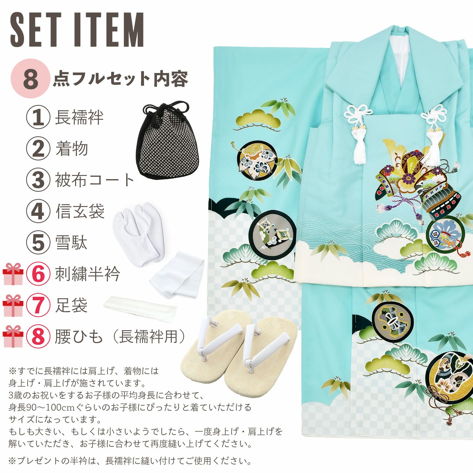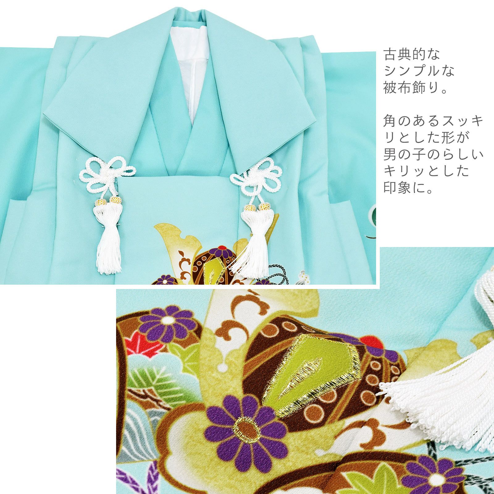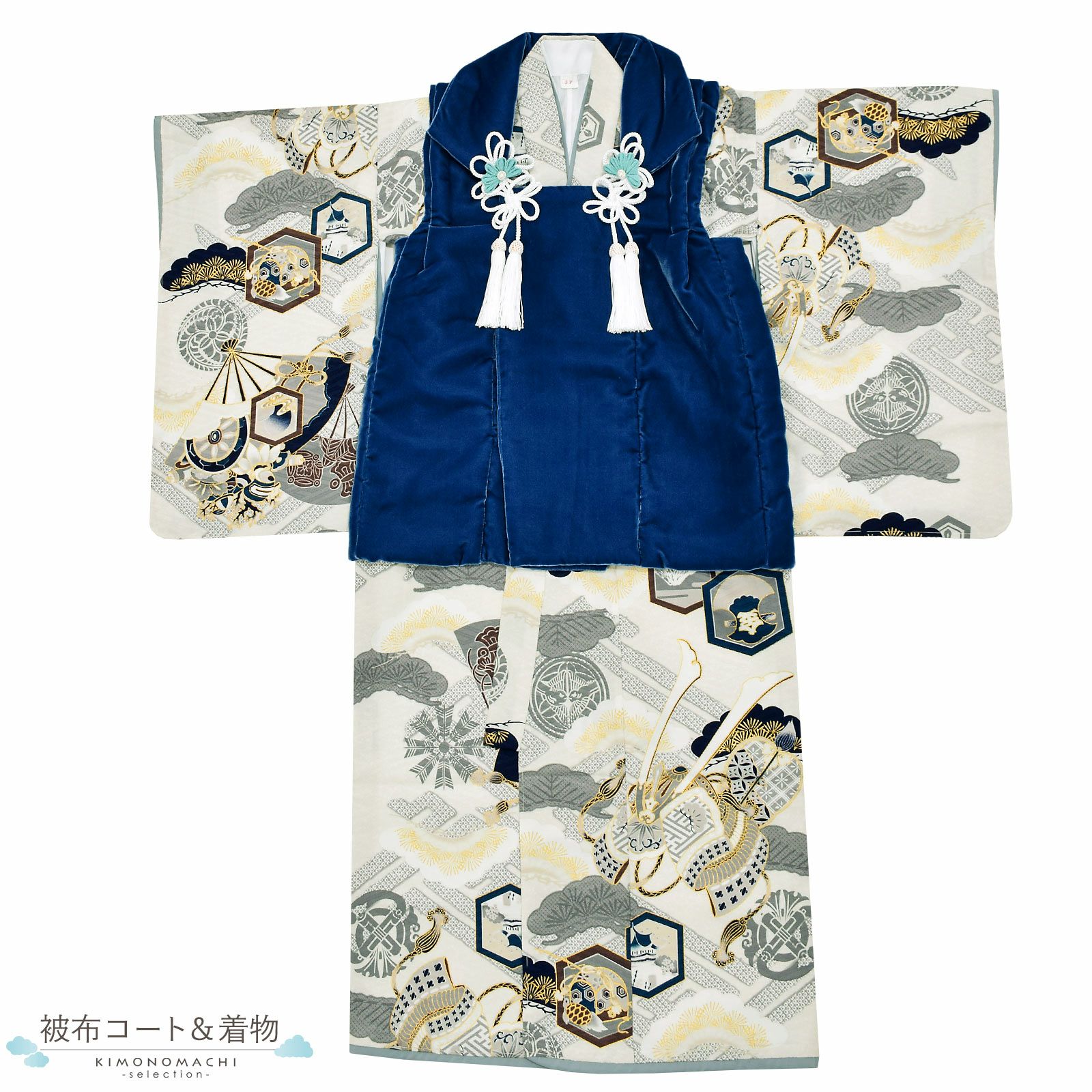 他の画像を見る 送料無料 3歳の男の子の七五三に 男児用被布セット お正月や端午の節句にも 七五三 着物 3歳 男の子 被布セット 「水色 兜、市松に宝尽くし」 三歳男児被布セット 子供着物 フルセット 三才のお祝い着 3才向け 日本製 【メール便不可】 きもの町価格 ¥ 56,100 税込 カートに入れる お気に入りに登録する