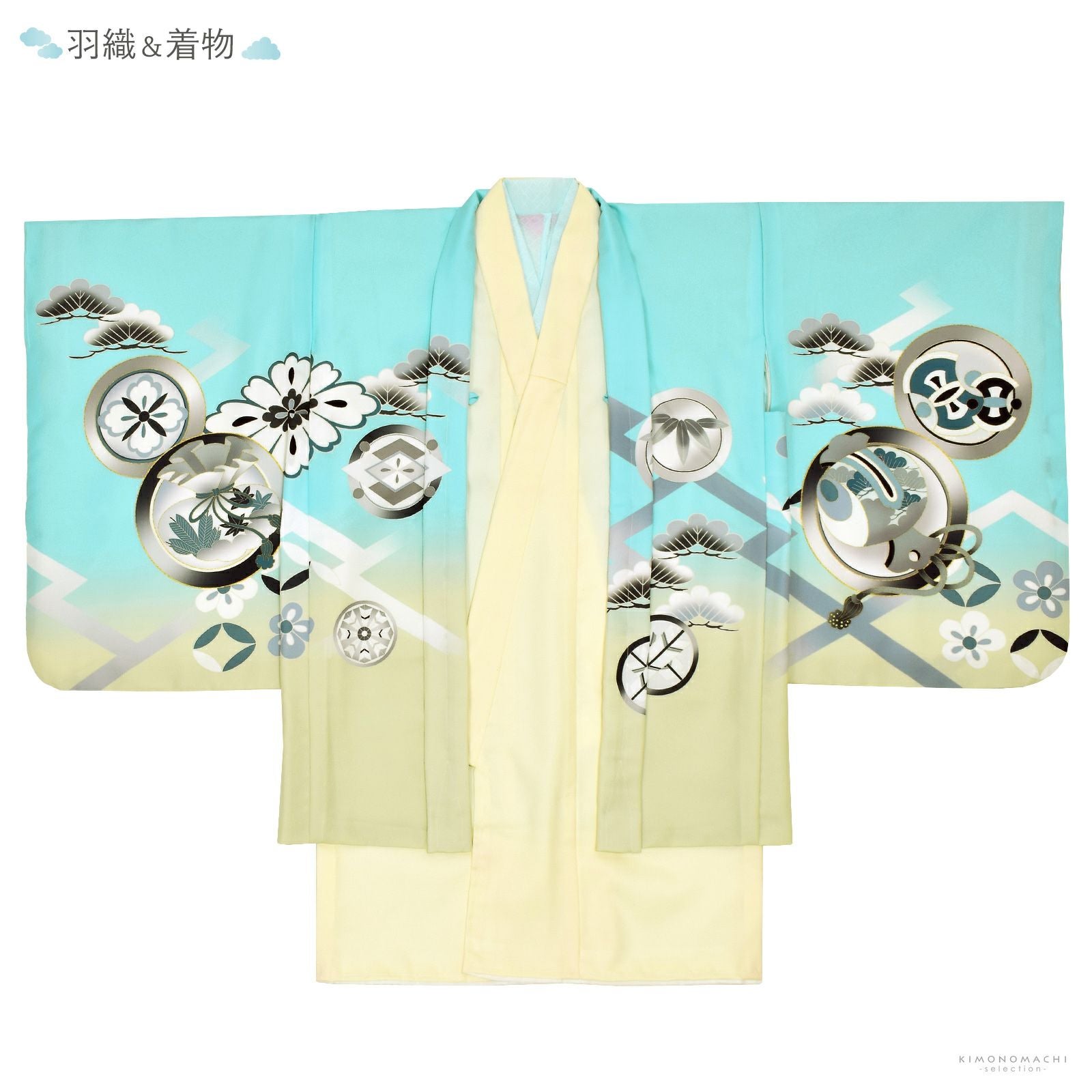 他の画像を見る 送料無料 3歳、5歳の男の子の七五三、節句に 羽織と着物のセット 七五三 着物 男の子 3歳~5歳 羽織・着物アンサンブル 「青磁色 雲取りに松と菊」 5才 3才向け 着物セット 男児用 子供着物 三才 五才のお祝い着 【メール便不可】 きもの町価格 ¥ 46,200 税込 カートに入れる お気に入りに登録する