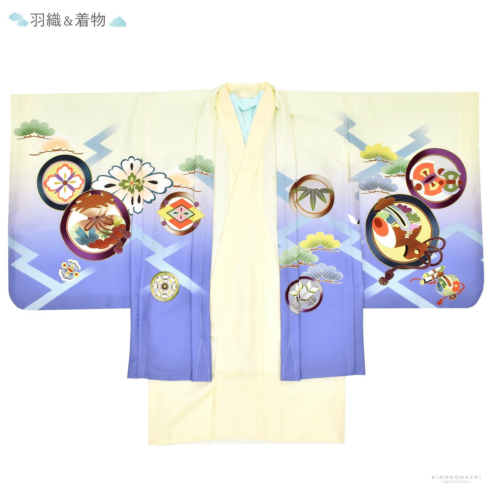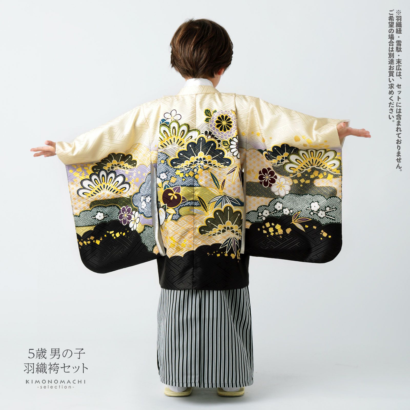他の画像を見る 送料無料 3歳、5歳の男の子の七五三、節句に 羽織と着物のセット 七五三 着物 男の子 3歳~5歳 羽織・着物アンサンブル 「鳥の子色 雲取りに松と菊」 5才 3才向け 着物セット 男児用 子供着物 三才 五才のお祝い着 【メール便不可】 きもの町価格 ¥ 46,200 税込 カートに入れる お気に入りに登録する