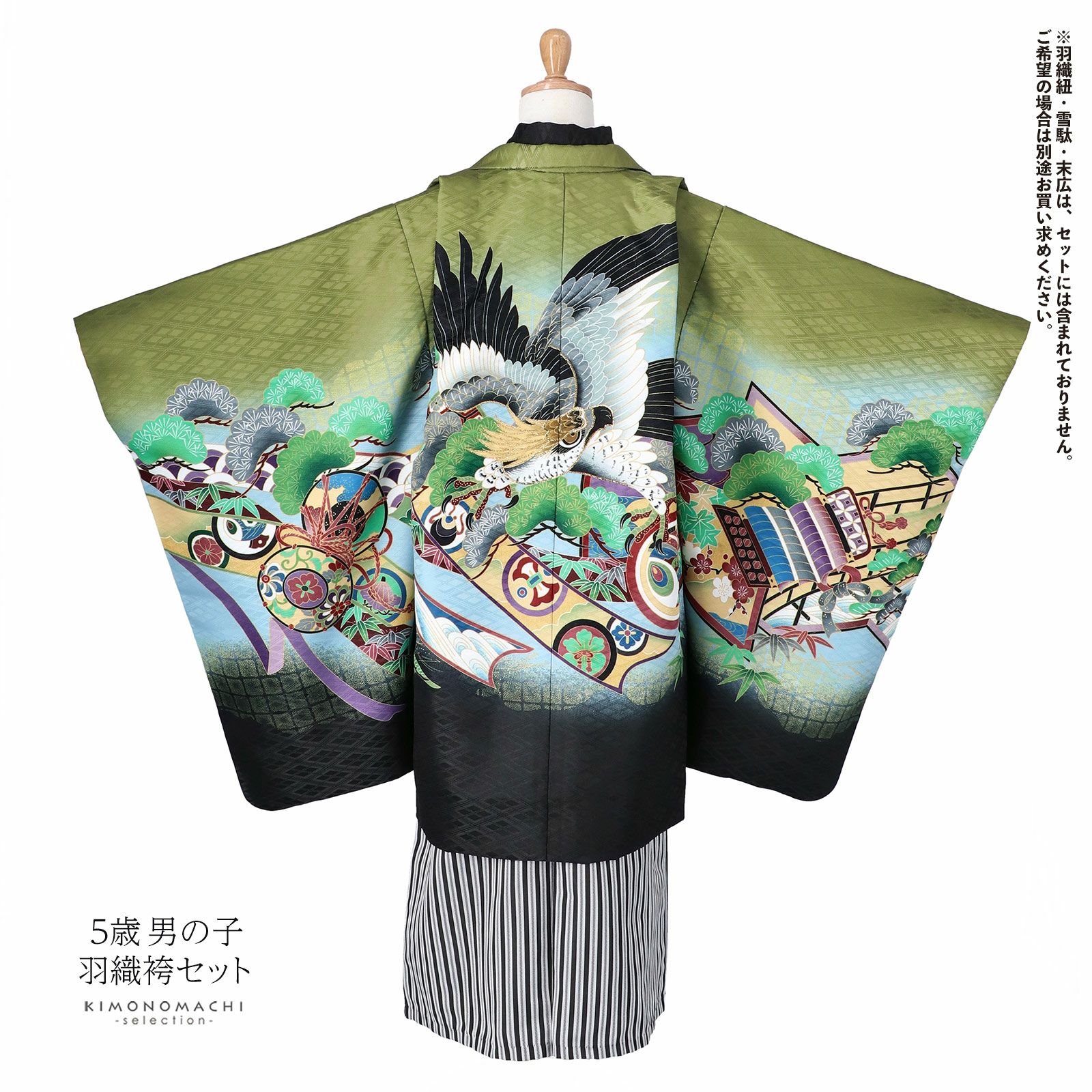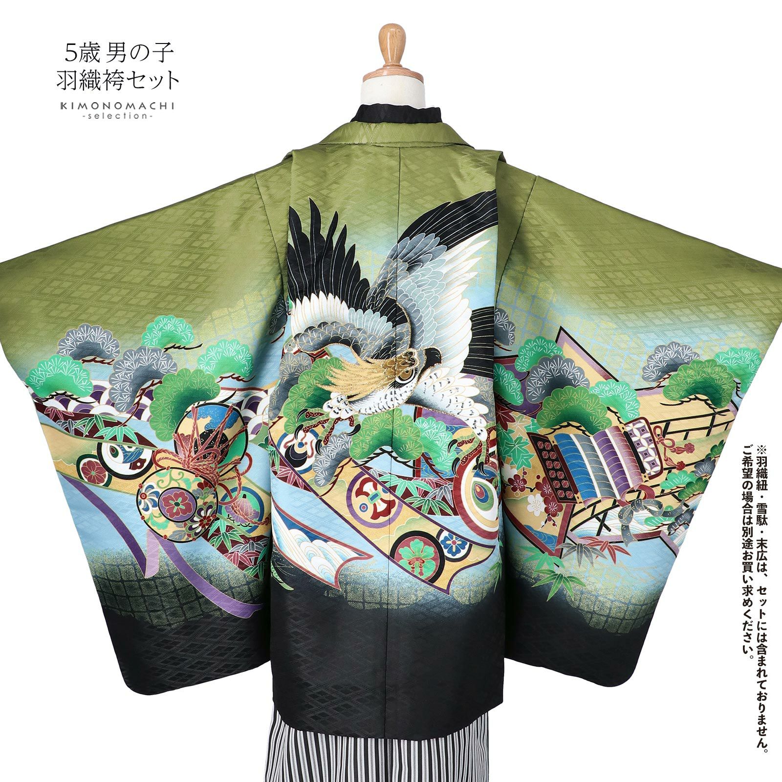 他の画像を見る 送料無料 七五三の男の子に、5歳~7歳の卒園式に 袴セット 七五三 着物 男の子 5歳 羽織袴セット 「抹茶色 鷹、蔓帯」 フルセット 5歳向け 5才 五歳 男児用 着物セット 子供着物 五才のお祝い着 【メール便不可】 きもの町価格 ¥ 37,290 税込 カートに入れる お気に入りに登録する