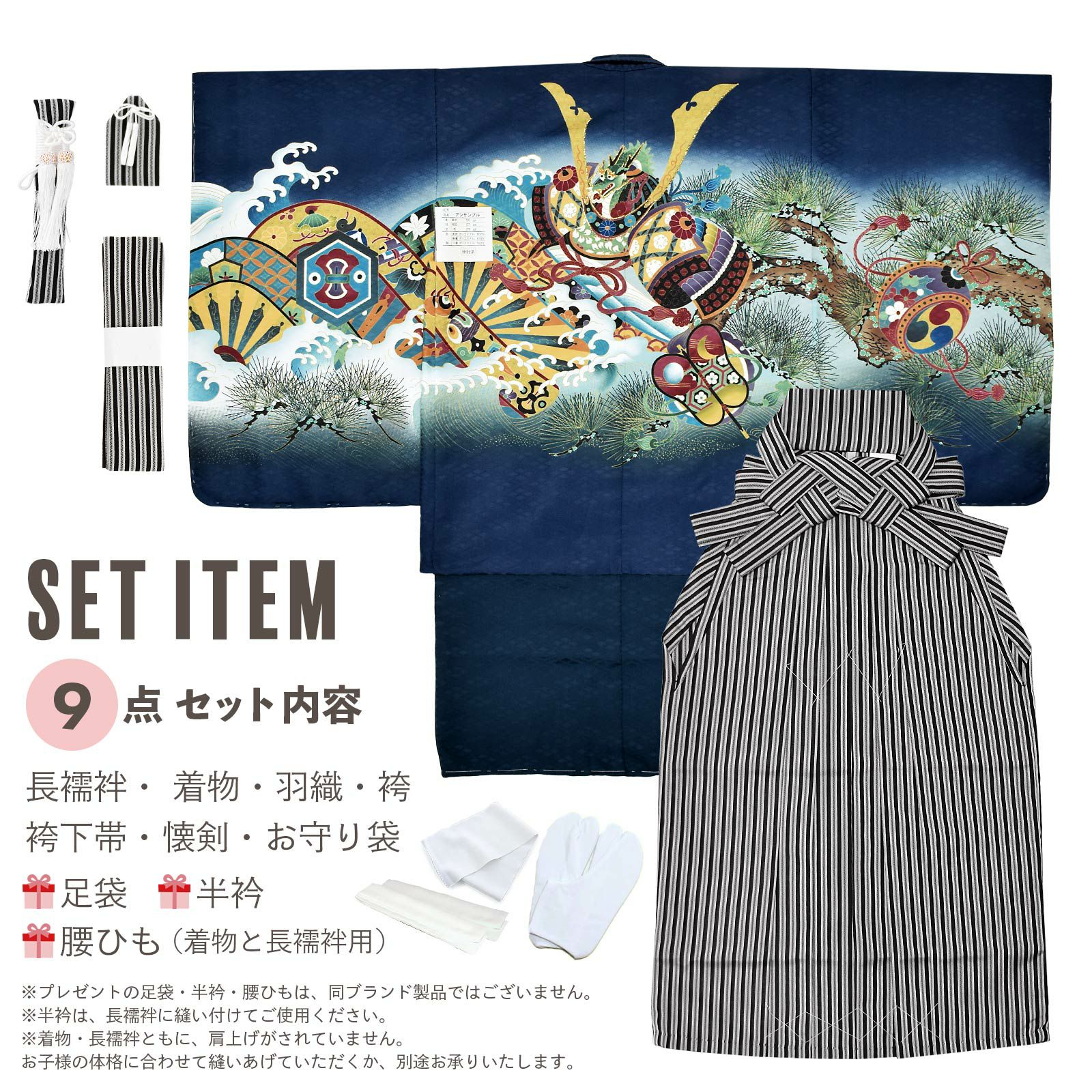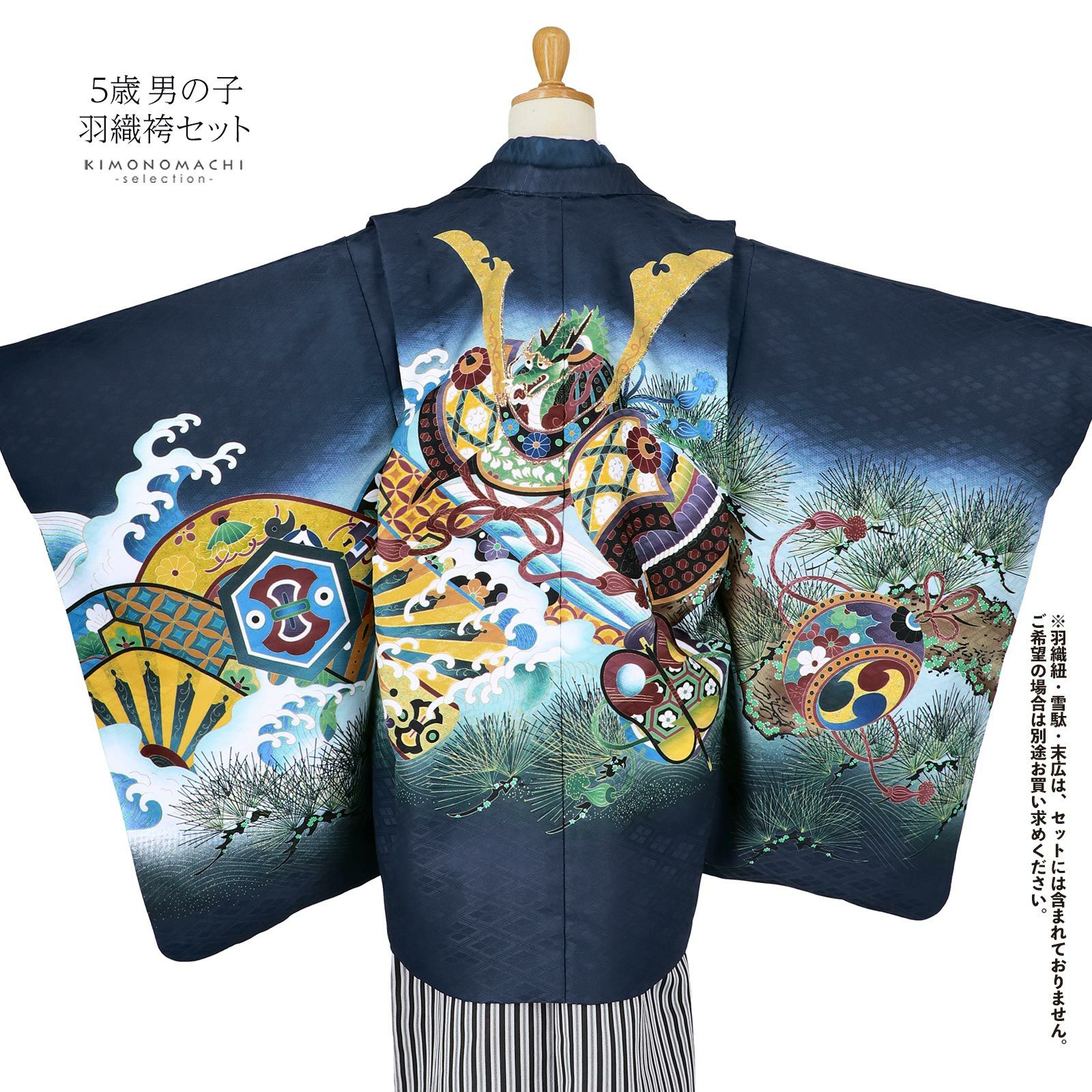 他の画像を見る 送料無料 七五三の男の子に、5歳~7歳の卒園式に 袴セット 七五三 着物 男の子 5歳 羽織袴セット 「紺 兜に片輪車」 フルセット 5歳向け 5才 五歳 男児用 着物セット 子供着物 五才のお祝い着 【メール便不可】 きもの町価格 ¥ 37,290 税込 カートに入れる お気に入りに登録する