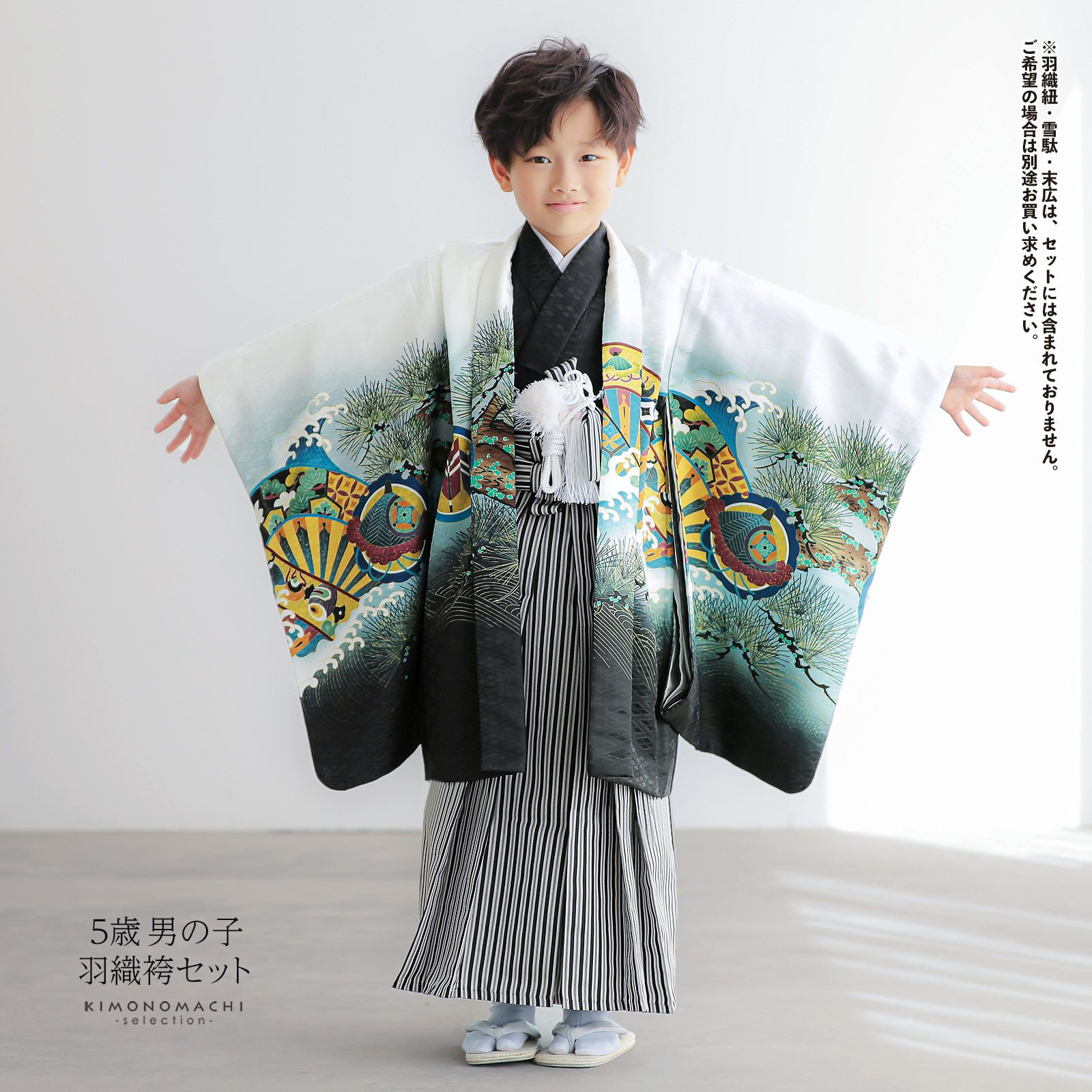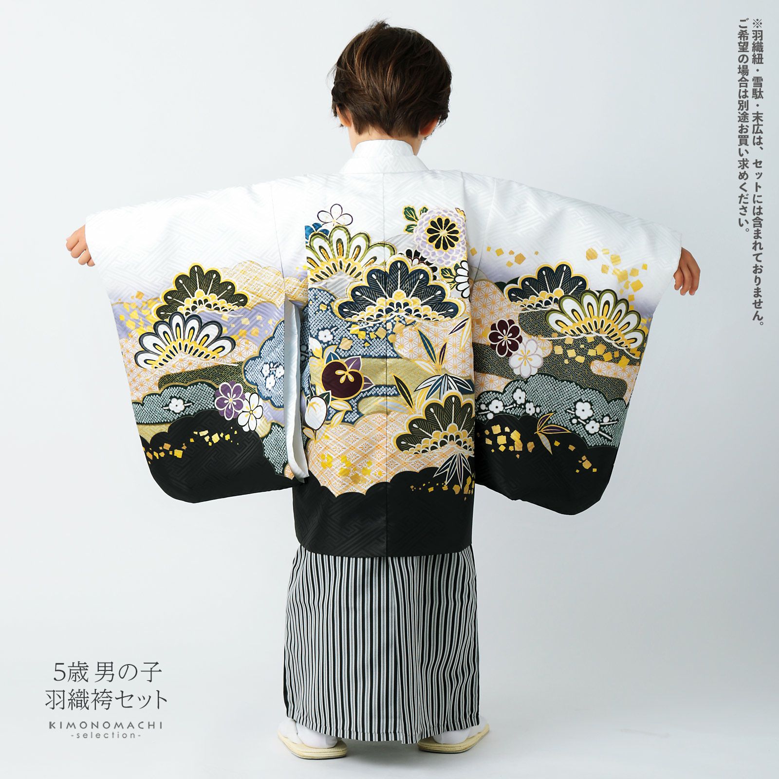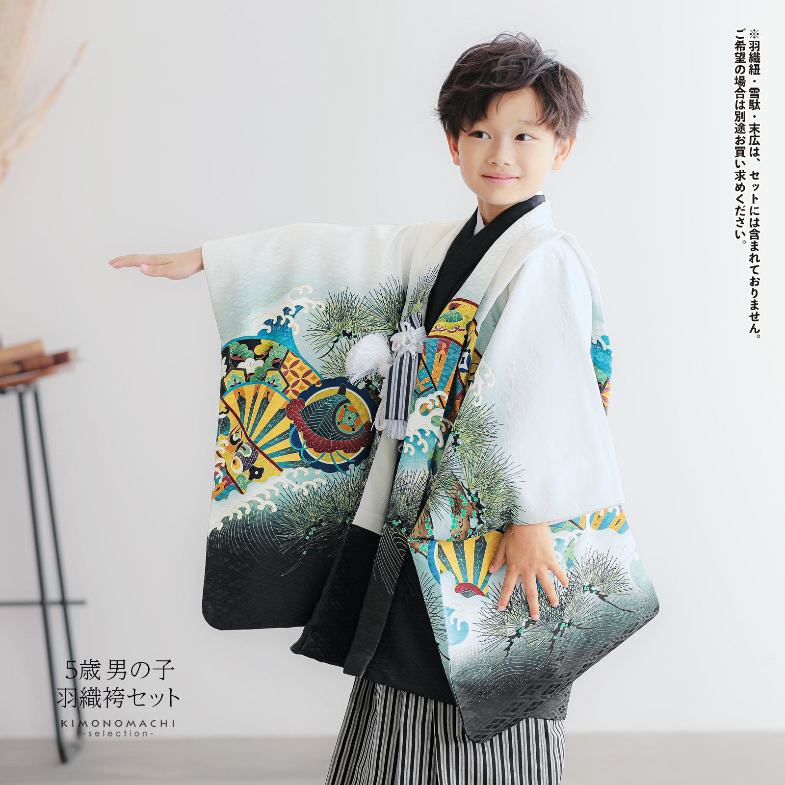 他の画像を見る 送料無料 3歳、5歳の男の子の七五三、節句に 羽織と着物のセット 七五三 着物 男の子 3歳~5歳 羽織・着物アンサンブル 「白 雲取りに松と菊」 5才 3才向け 着物セット 男児用 子供着物 三才 五才のお祝い着 【メール便不可】 きもの町価格 ¥ 46,200 税込 カートに入れる お気に入りに登録する