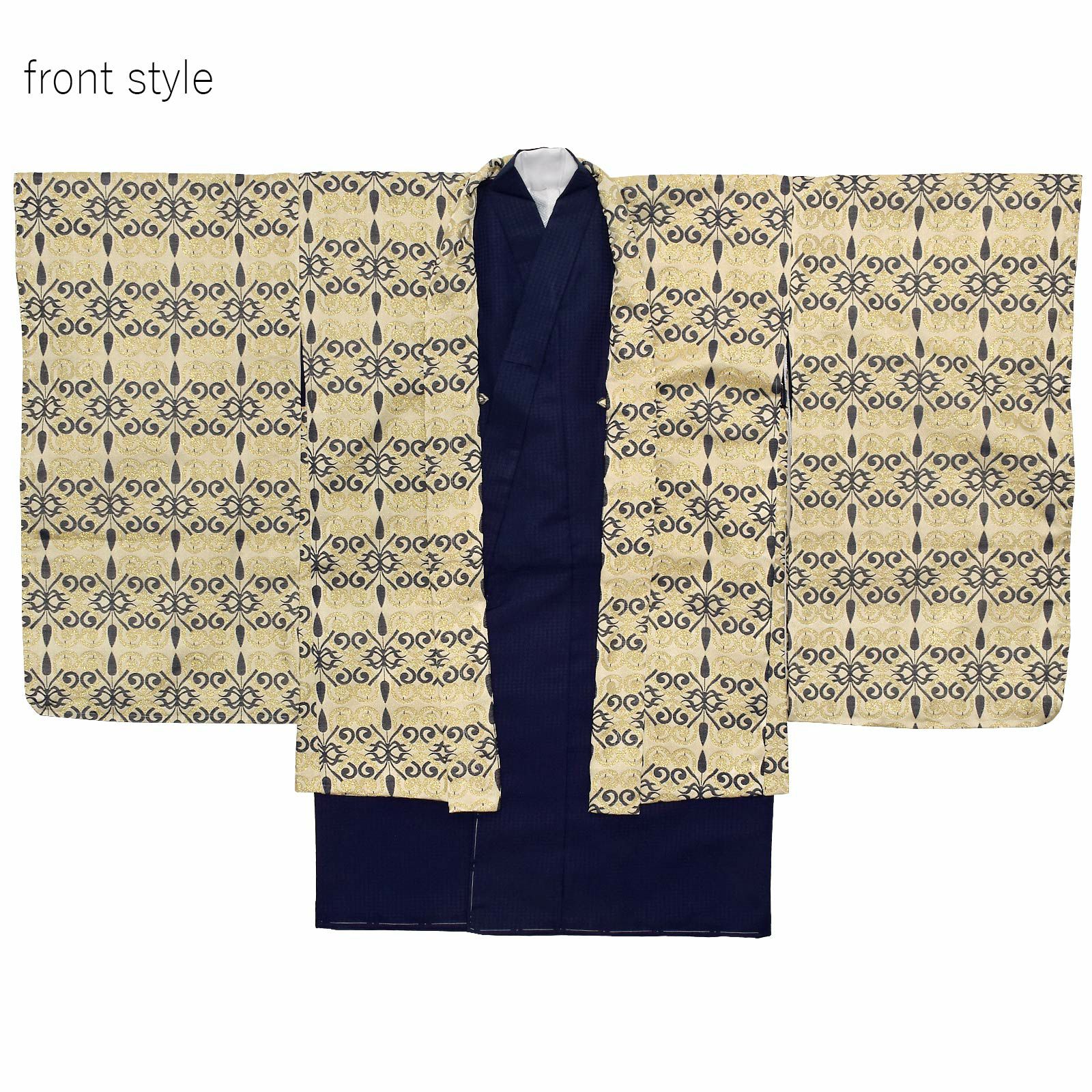 他の画像を見る 送料無料 七五三の3才、5才の男の子に 羽織と着物と袴に、襦袢や小物がついた羽織袴セット 【Prices down2】七五三 着物 男の子 3歳~5歳 羽織袴セット 「シャンパンゴールド 唐草 紺色 906」 小柄な五歳 大きな三歳向け 対応身長100cm~110cm前後 着物セット 男児用 3才~5才 着物セット 子供着物 五才のお祝い着 3歳~5歳向け 【メール便不可】ss2509kkd15 通常販売価格 ¥ 103,400 のところ きもの町価格 ¥ 103,400 税込 カートに入れる お気に入りに登録する
