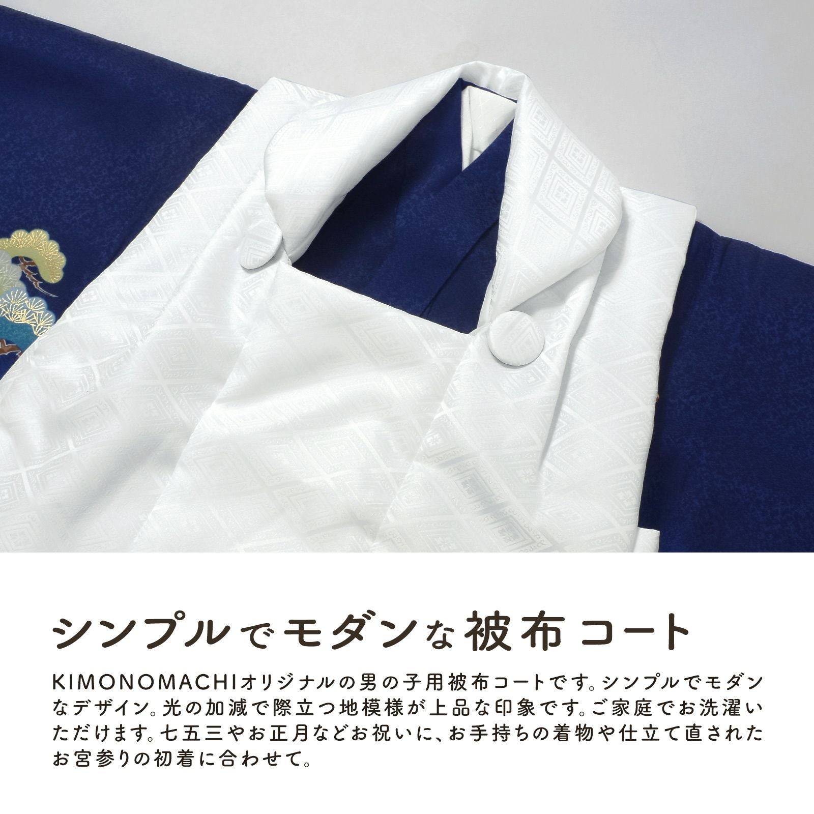 他の画像を見る シンプルでモダンな被布コート 七五三 着物 3歳 男の子 被布コート 単品「白 菱」中綿入り KIMONOMACHI オリジナル 男の子用被布コート単品 3才 男児用 三歳被布コート【メール便不可】 きもの町価格 ¥ 6,930 税込 在庫切れ 詳細を見る お気に入りに登録する