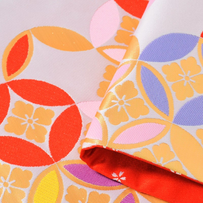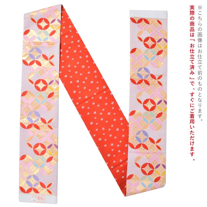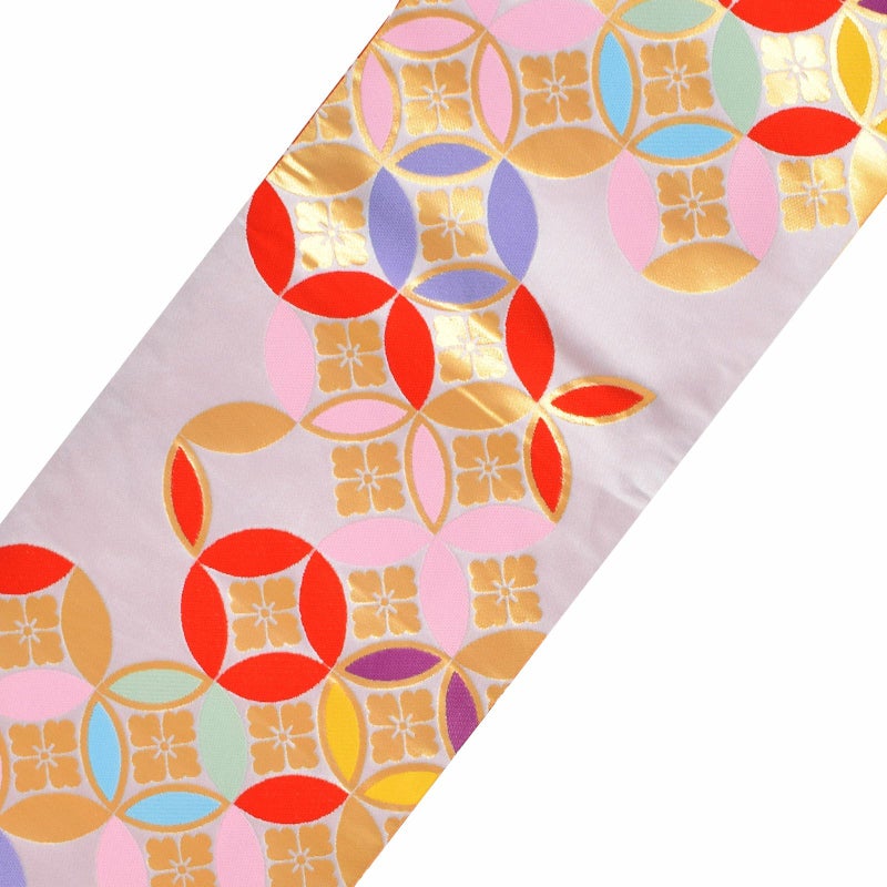 七五三 帯 7歳用 袋帯「薄ピンク地七宝花菱」仕立て上がり 全通柄 七歳用 女の子 子供 帯 七歳お祝い着として四つ身着物に合わせて 和装【メール便不可】ss2506kkd10