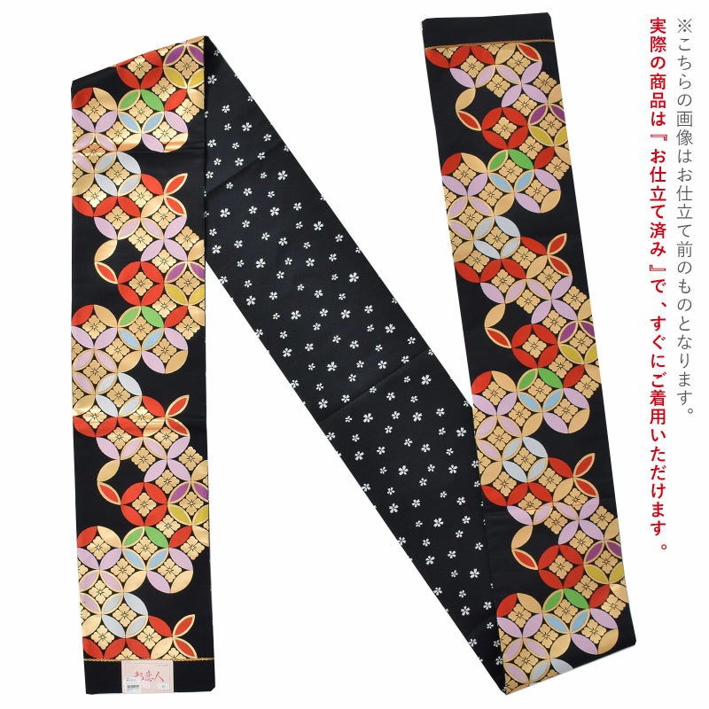 七五三 帯 7歳用 袋帯「黒地七宝花菱」仕立て上がり 全通柄 七歳用 女の子 子供 帯 七歳お祝い着として四つ身着物に合わせて 和装【メール便不可】ss2506kkd10