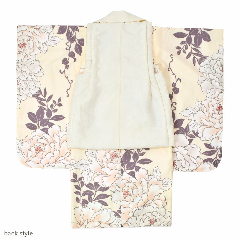 ※着物はすでに身上げ、肩上げが施されています。3歳のお祝いをするお子様の平均身長に合わせて、身長90~100cmぐらいのお子様がぴったりと着ていただけるサイズになっています。もしそれでは大きい、もしくは小さいようでしたら身上げ、肩上げを一度解いていただいて、お子様に合わせて、再度縫い上げてください。