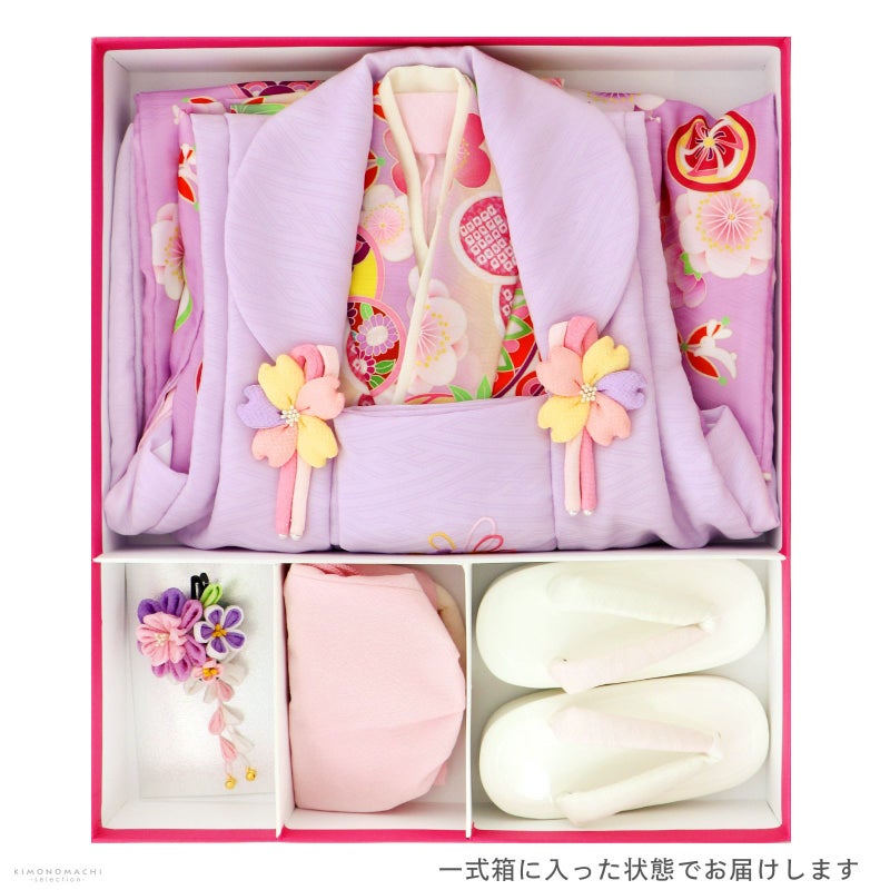 5. 七五三 着物 3歳 女の子 ブランド被布セット Shikibu Roman 式部浪漫「パープル パープル、鈴と手鞠」三歳女児被布セット 子供着物 フルセット 三才のお祝い着 3才向け【メール便不可】