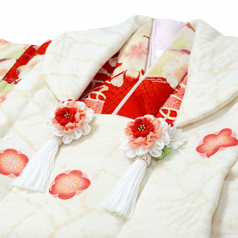 6. 七五三 着物 3歳 女の子 ブランド被布セット 華徒然「オフホワイト×赤 檜扇」三歳女児被布セット 子供着物 フルセット 三才のお祝い着 3才向け【メール便不可】