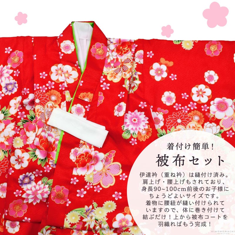 女の子の七五三に!3歳から着られる被布セットです。お着物には重ね衿が縫い付けられています。