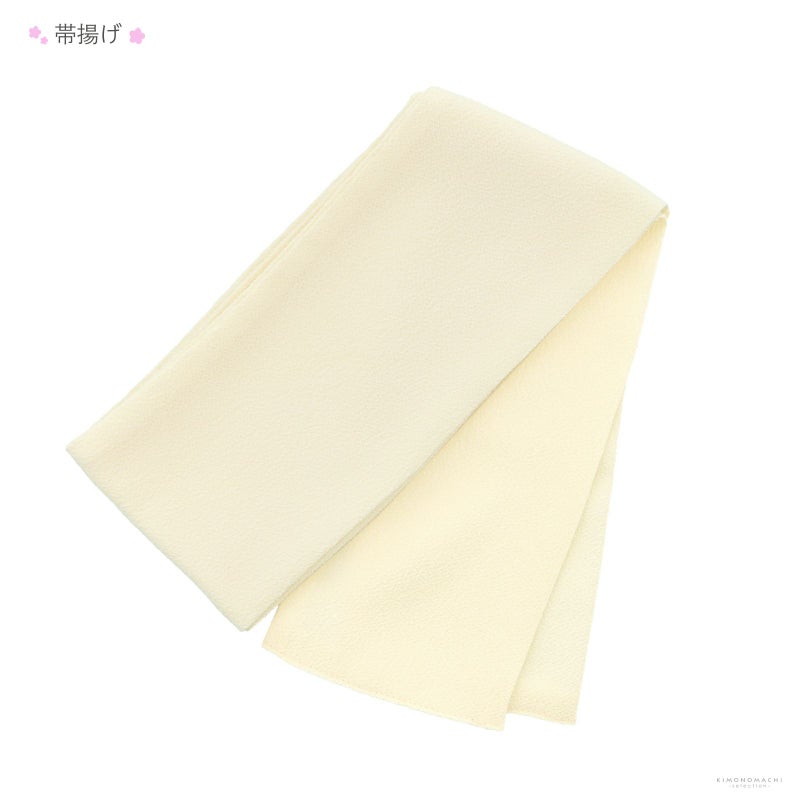 帯締め:アイボリーの縮緬地の帯揚げ。
