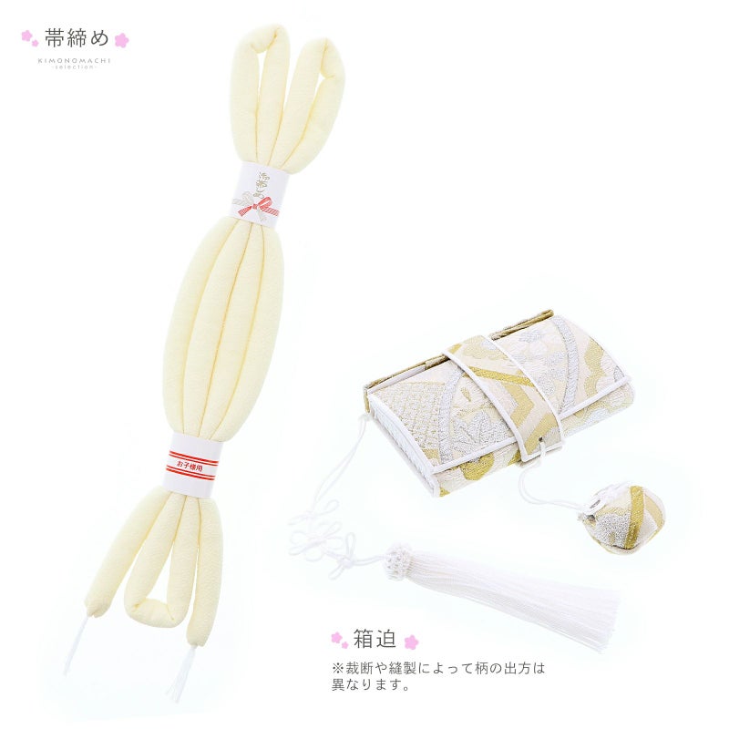 しごき:アイボリーの縮緬地に白の房飾り。
