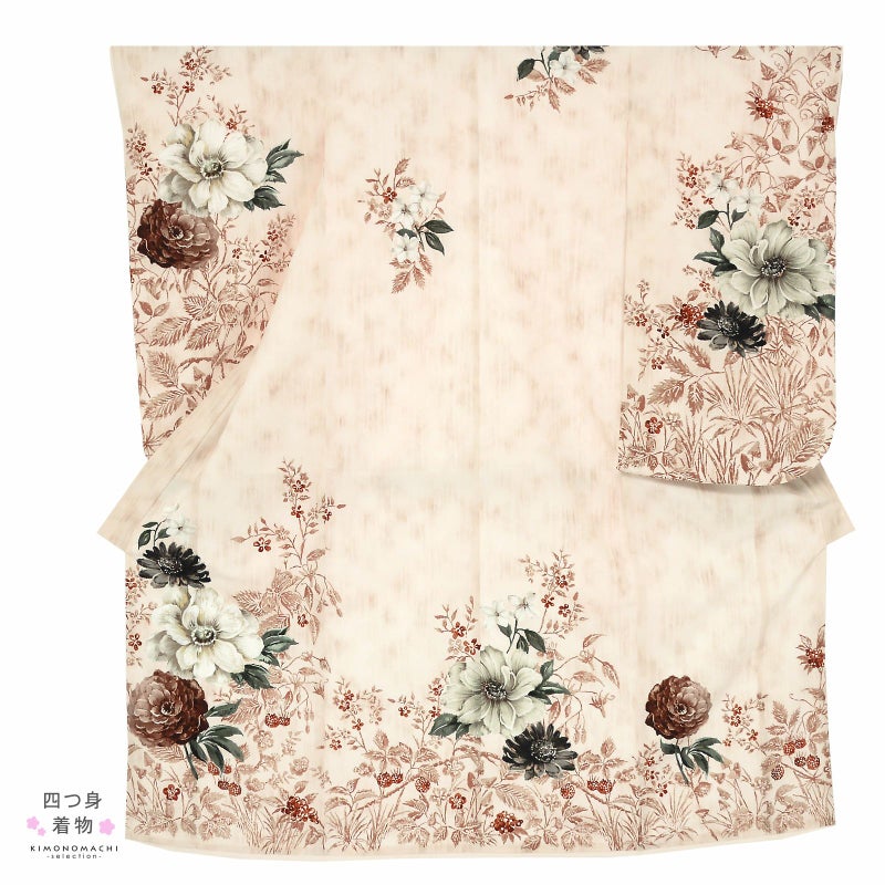 ワイルドベリーの草花模様が着物全体に広がります。