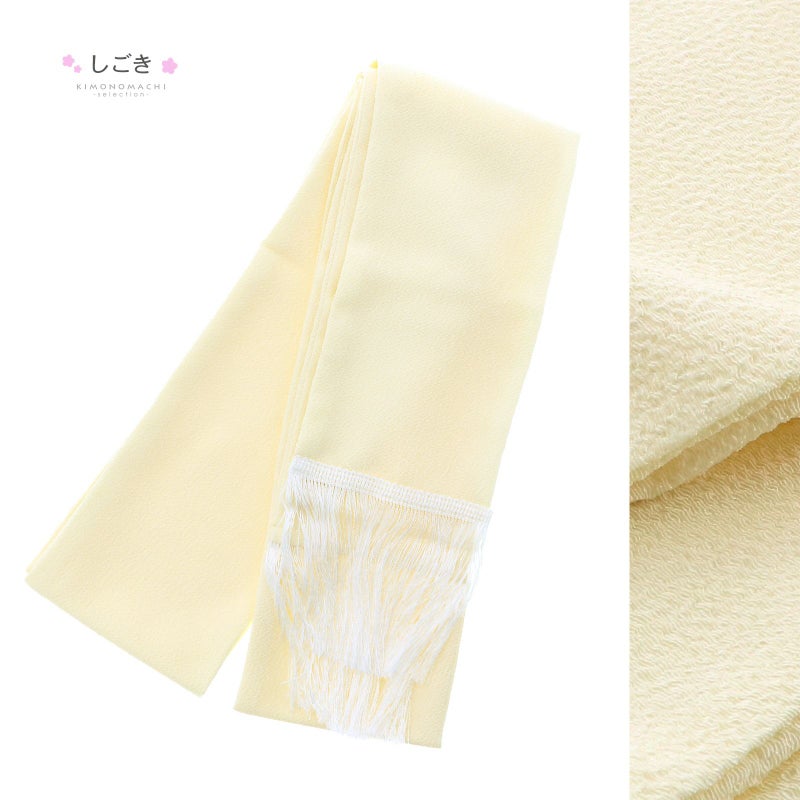 しごき:アイボリーの縮緬地に白の房飾り。