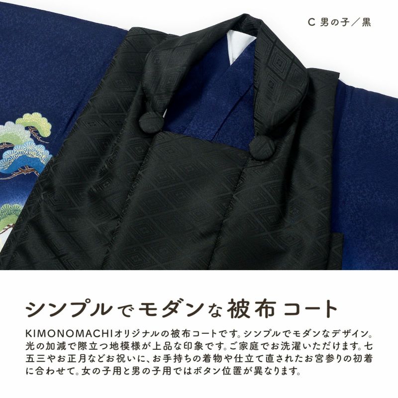 C.男の子 黒:黒。入れ子菱に花菱の地模様が織り出されています。ボタンは外側。