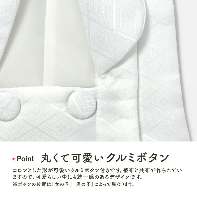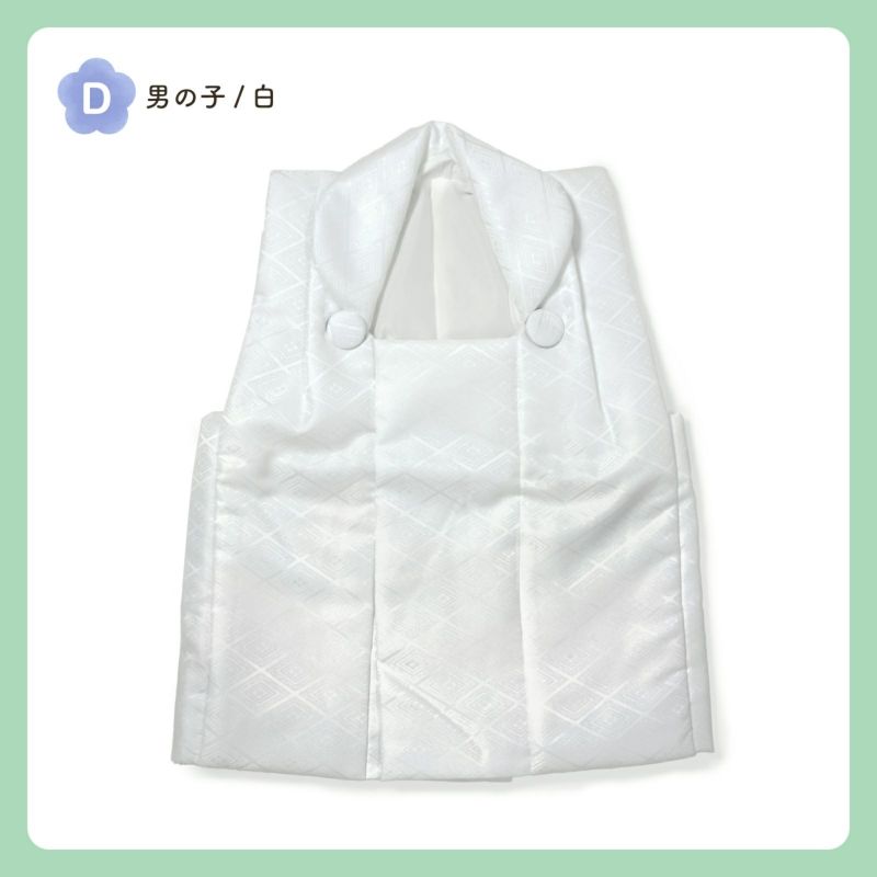 D.男の子 白:白。入れ子菱に花菱の地模様が織り出されています。ボタンは外側。