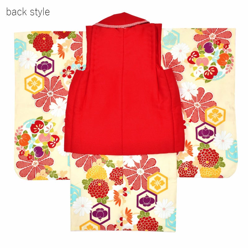 ※着物はすでに身上げ、肩上げが施されています。3歳のお祝いをするお子様の平均身長に合わせて、身長90~100cmぐらいのお子様がぴったりと着ていただけるサイズになっています。もしそれでは大きい、もしくは小さいようでしたら身上げ、肩上げを一度解いていただいて、お子様に合わせて、再度縫い上げてください。