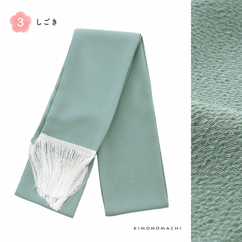 しごき:グレイッシュな水色の縮緬地。