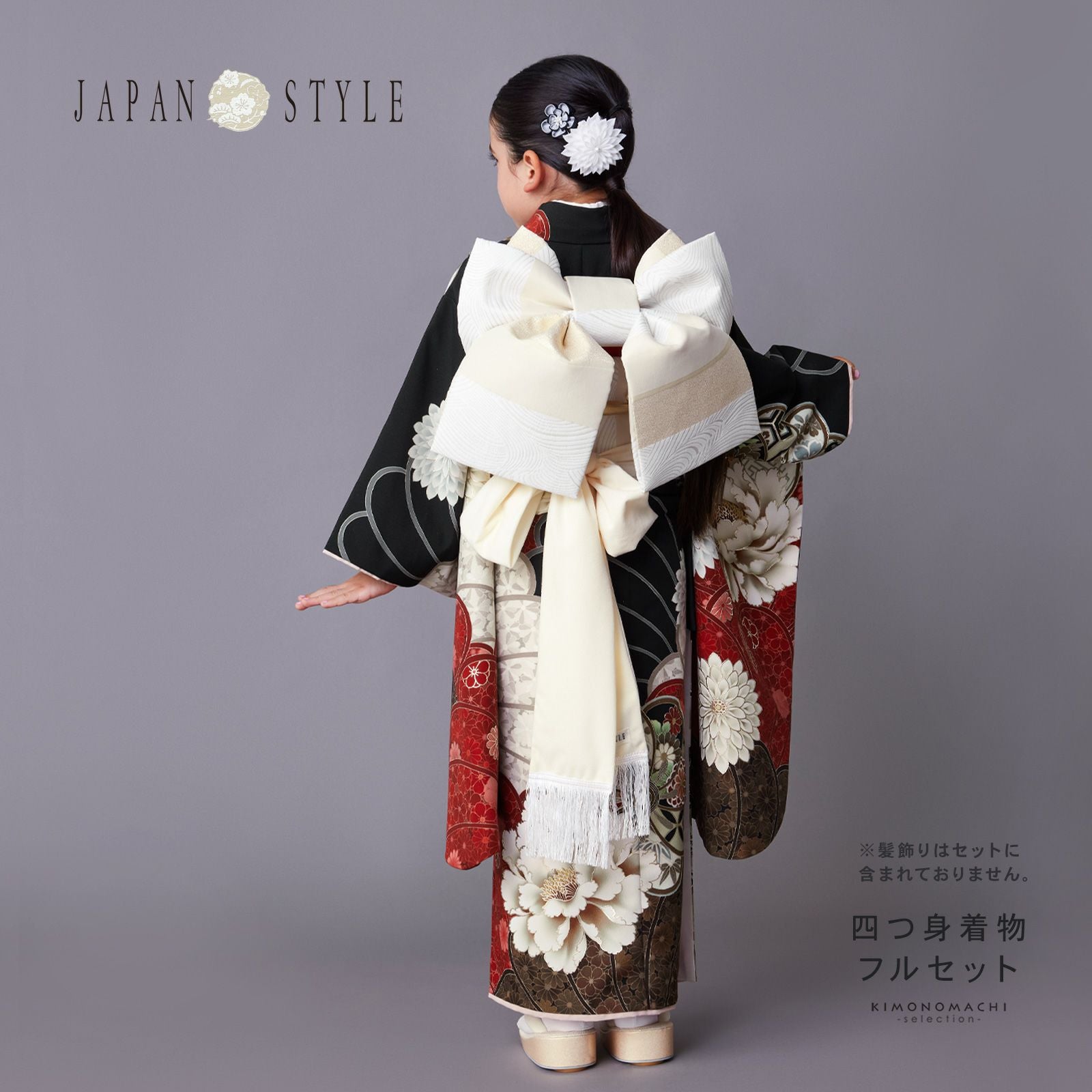 他の画像を見る 送料無料 七五三 七歳の女の子に 華やかな四つ身着物 ひな祭り、桃の節句 お正月にも お子様着物に 七五三 7歳 四つ身着物フルセット ブランド JAPAN STYLE ジャパンスタイル「黒地 捻じ花に菊、大牡丹」女の子 7才 女児用 子供着物 七才のお祝い着向け【メール便不可】 きもの町価格 ¥ 266,200 税込 カートに入れる お気に入りに登録する
