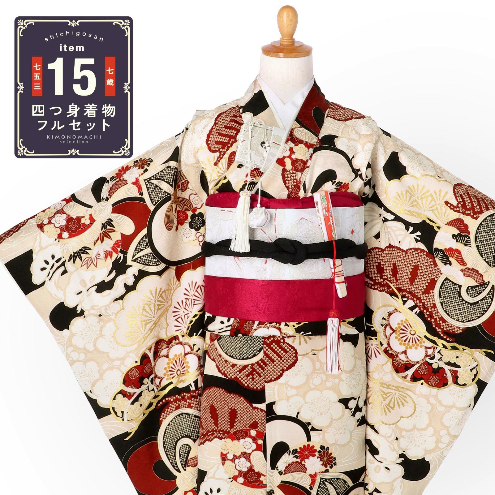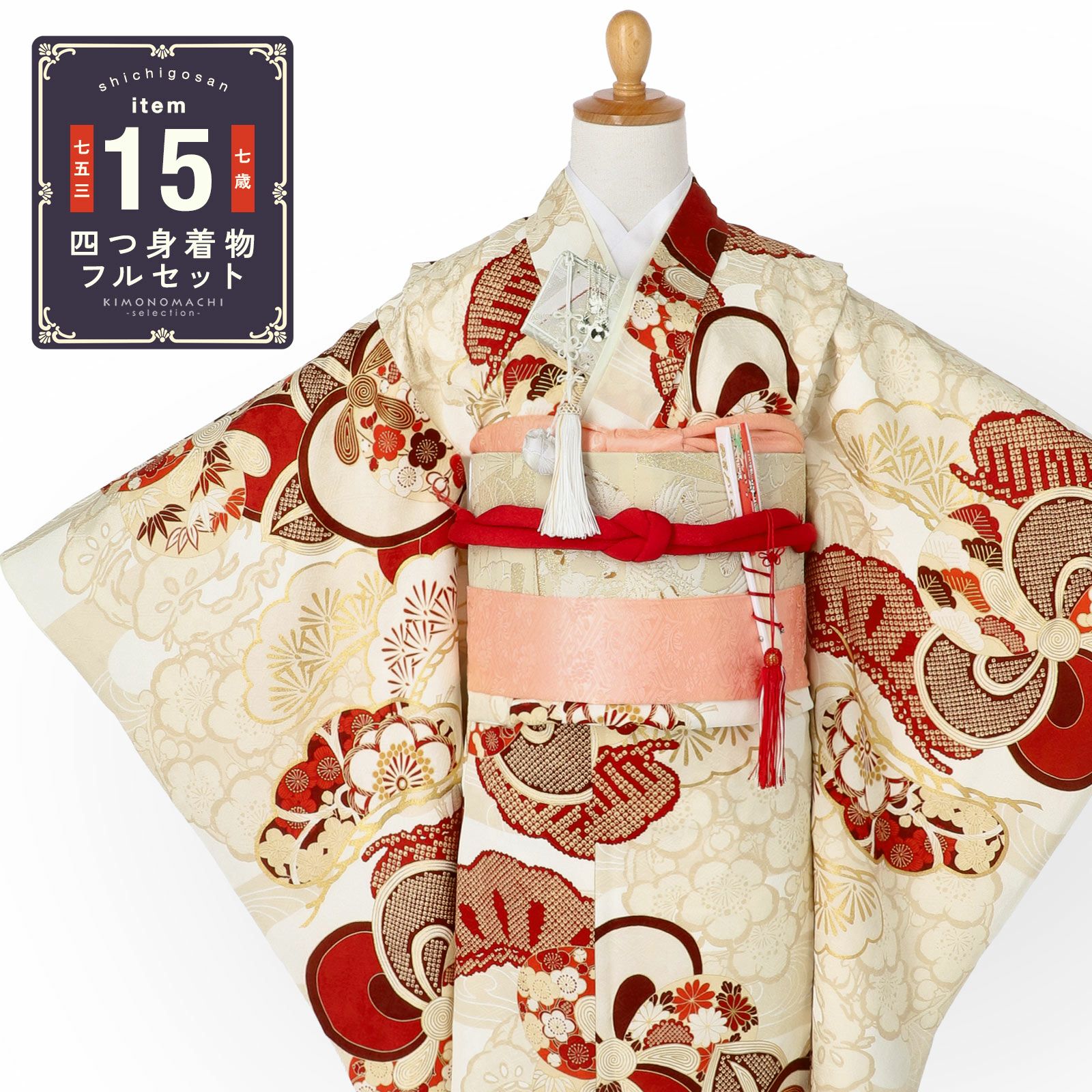 他の画像を見る 送料無料 七五三 七歳の女の子に 華やかな四つ身着物 ひな祭り、桃の節句 お正月にも お子様着物に 七五三 7歳 四つ身着物フルセット ブランド 紅一点「生成り色 ねじ梅に橘と松竹梅」女の子 7才 女児用 子供着物 七才のお祝い着向け【メール便不可】 きもの町価格 ¥ 313,500 税込 カートに入れる お気に入りに登録する
