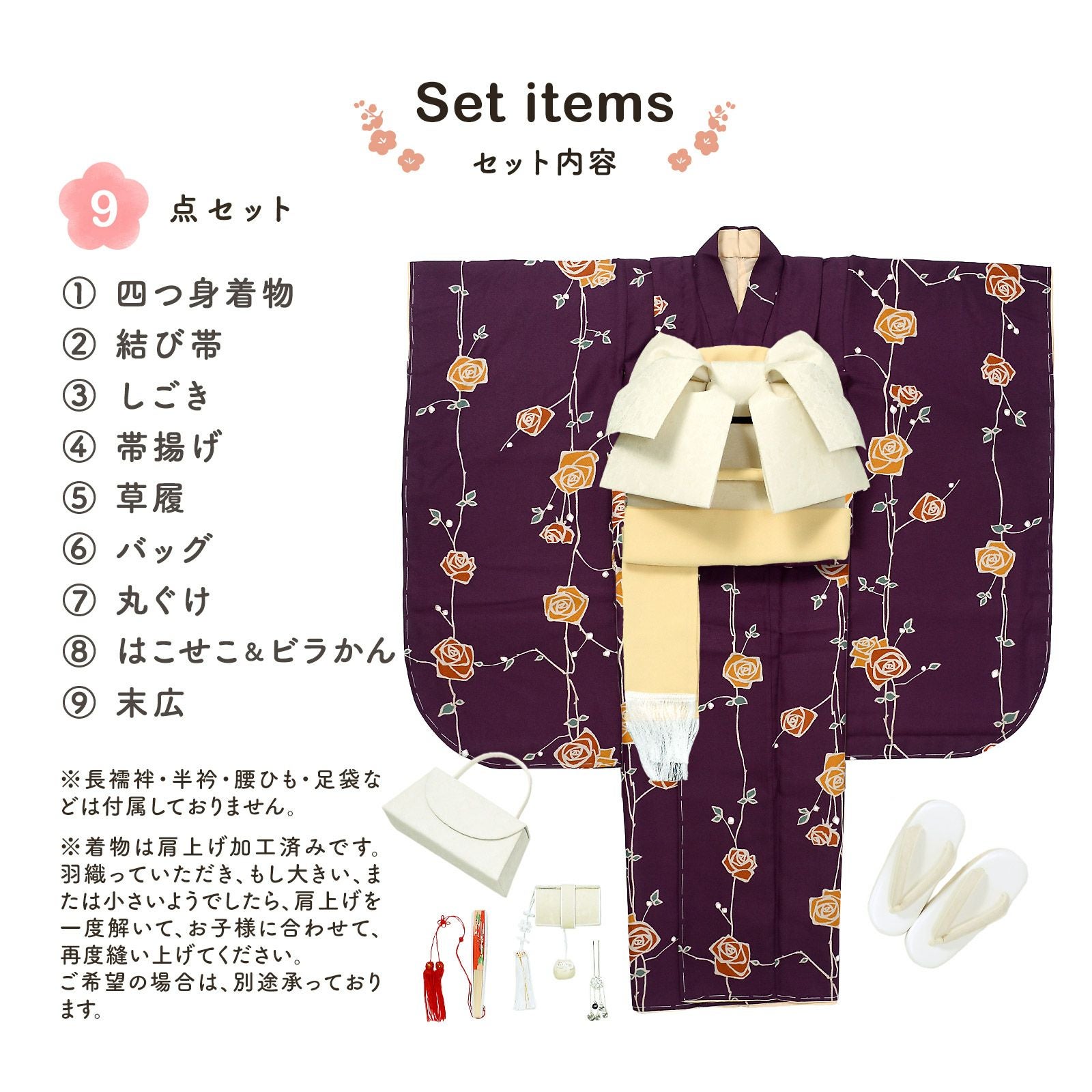 他の画像を見る 送料無料 京都きもの町 こだわりの一着を、七歳の晴れ舞台に。 七五三 7歳 四つ身着物セット「ばら 紫色」女の子 7才 女児用 子供着物 七才のお祝い着向け KIMONOMACHI オリジナル【メール便不可】 きもの町価格 ¥ 97,020 税込 詳細を見る お気に入りに登録する