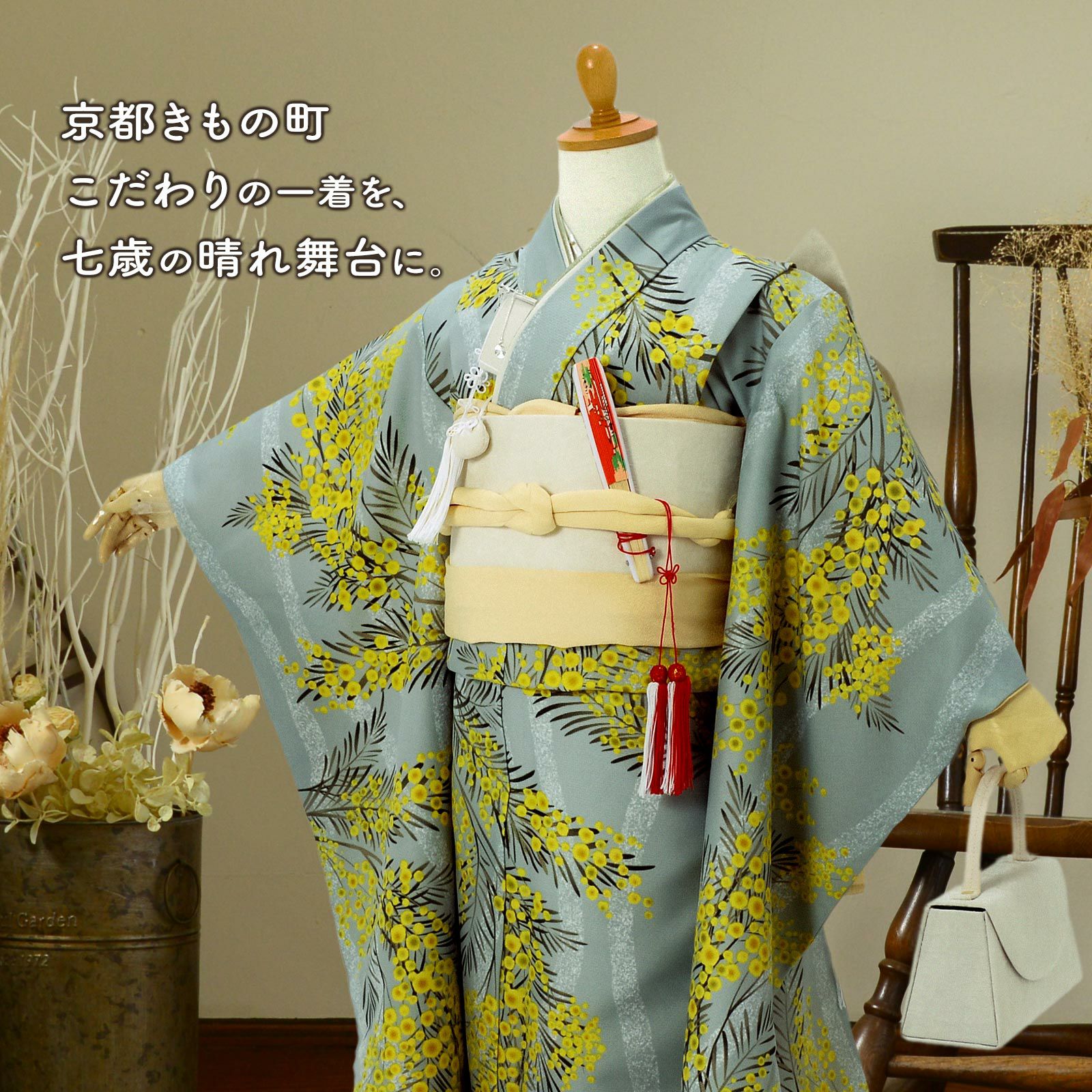 他の画像を見る 送料無料 京都きもの町 こだわりの一着を、七歳の晴れ舞台に。 七五三 7歳 四つ身着物セット「ミモザに立涌 錆青磁色」女の子 7才 女児用 子供着物 七才のお祝い着向け KIMONOMACHI オリジナル【メール便不可】 きもの町価格 ¥ 97,020 税込 詳細を見る お気に入りに登録する